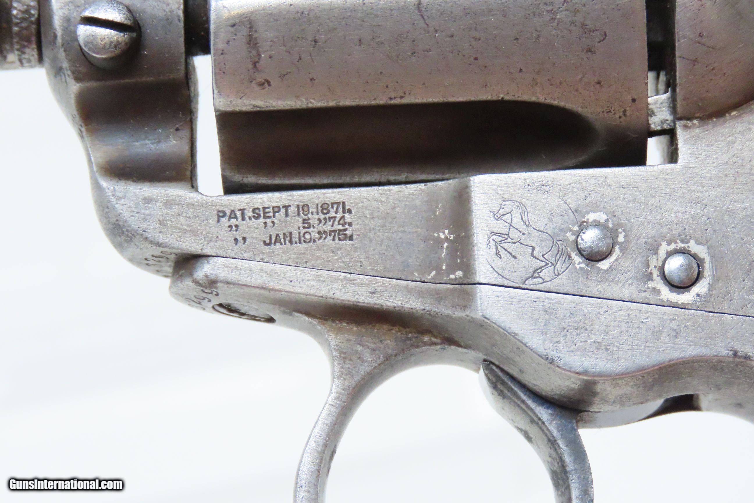 Description: 1896 Antique COLT Model 1877 “THUNDERER” .41 Long Colt Double Action REVOLVER Billy the Kid, Doc Holliday, John Wesley Hardin Here we present an antique Colt Model 1877 Thunderer Double Action Revolver, made in 1896 in Hartford, Connecticut. The Model 1877 was Colt’s first venture into double action revolvers. It was quite successful, selling 166,849 from 1877 through 1909. Nonetheless, there was some hesitation to move away from the single action mechanism, which had so proven itself. Famous adopters of the Lightning were William “Billy the Kid” Bonney and John Wesley Hardin, along with “Doc” Holliday. Doc’s weapon of choice early in his western career was an 1851 Colt Navy revolver. Later, Doc carried a nickel-plated .41 caliber Colt Thunderer or the .38 caliber Colt Lightning. The Model 1877 was designed in 1876 by William Mason and was offered in three different calibers with production beginning in January 1877, which led to the three unofficial names. The first production model was the “Lightning”, in .38 Long Colt caliber. Later that year, Colt came out with the .41 Long Colt caliber called the “Thunderer”. The .32 Long Colt caliber, called the “Rainmaker”, didn’t go into production until sometime in 1887. Benjamin Kittredge, the largest Colt Distributor in Cincinnati, Ohio, coined the nicknames for these guns as a marketing tool. He was also responsible for calling the Model 1873 Single Action Army the “Peacemaker”. None of the nicknames were ever used by the factory in any reference materials. The 1877 “Thunderer” in .41 caliber was the preferred weapon of Billy the Kid and was his weapon of choice when he was killed by Pat Garret in 1881. The overall condition is good. Small traces of original nickel came be see amongst the gray patina. The action (hammer/trigger) is strong in double and single action modes; cylinder indexes and locks up well on all but one chamber. Grips are replacements. Numbers match. Own the original! This is a legitimate antique and not a reproduction. Barrel is 4-1/2 inches. Caliber: .41 Long Colt Overall condition as seen in photos. Very Fast. Very Safe. FREE SHIPPING WORLDWIDE. Delivered directly to your door by express mail! Guaranteed AUTHENTIC & Includes CERTIFICATE OF AUTHENTICITY. ancestryguns $1600 #230414 SOLD Antique: Yes |
