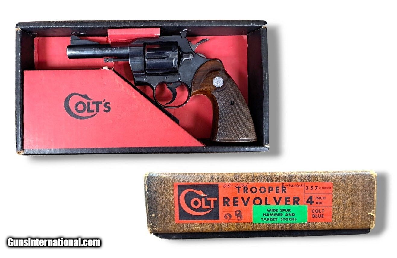Description: Guns Listing ID: 952634 ORIGINAL BOX SOLD Manufacturer: COLT Model: Trooper .357 Caliber Info: .357 MAG Condition: Used - Non-Certified Barrels: 4 BARREL Finish: BLUE STEEL |