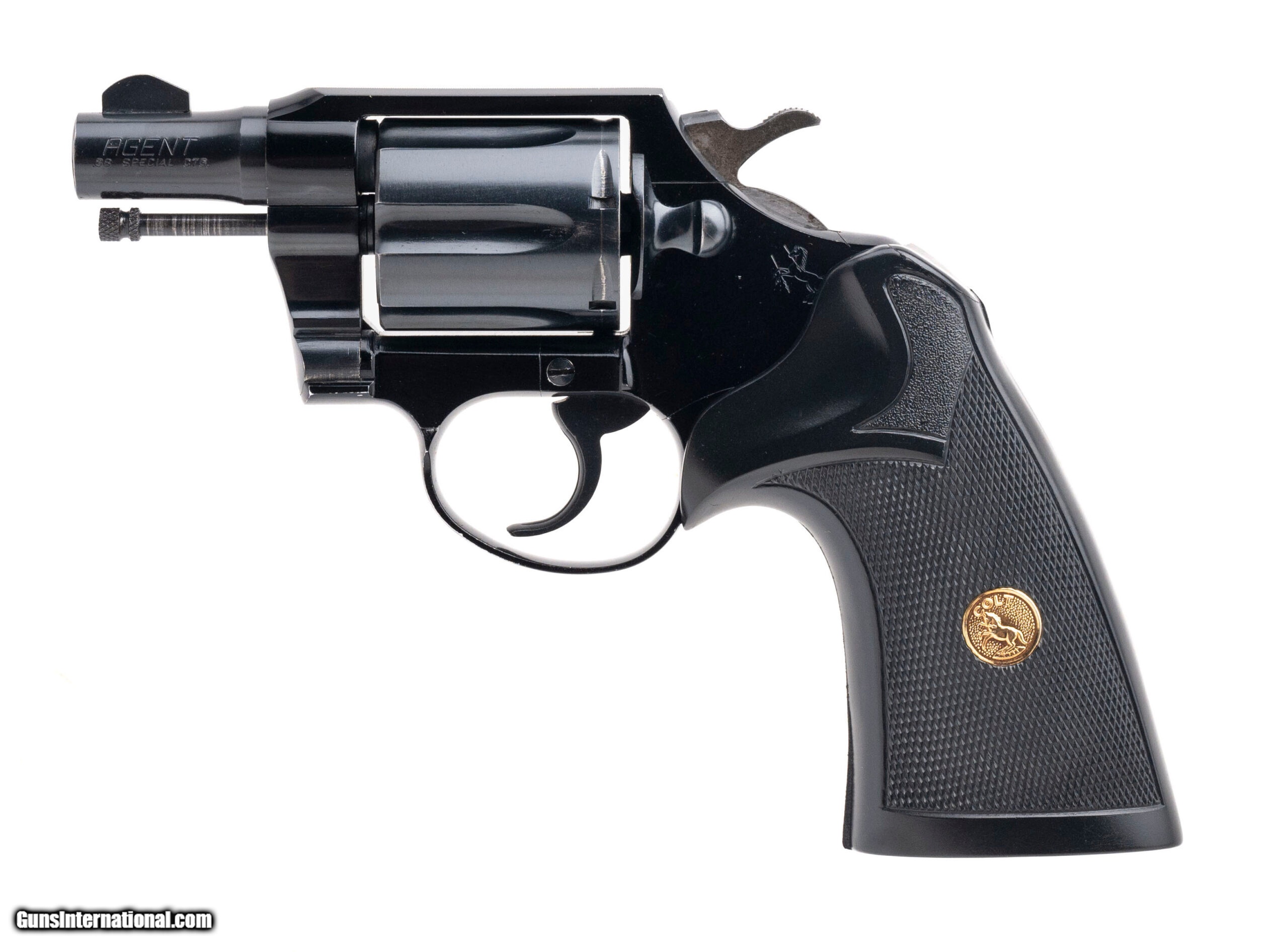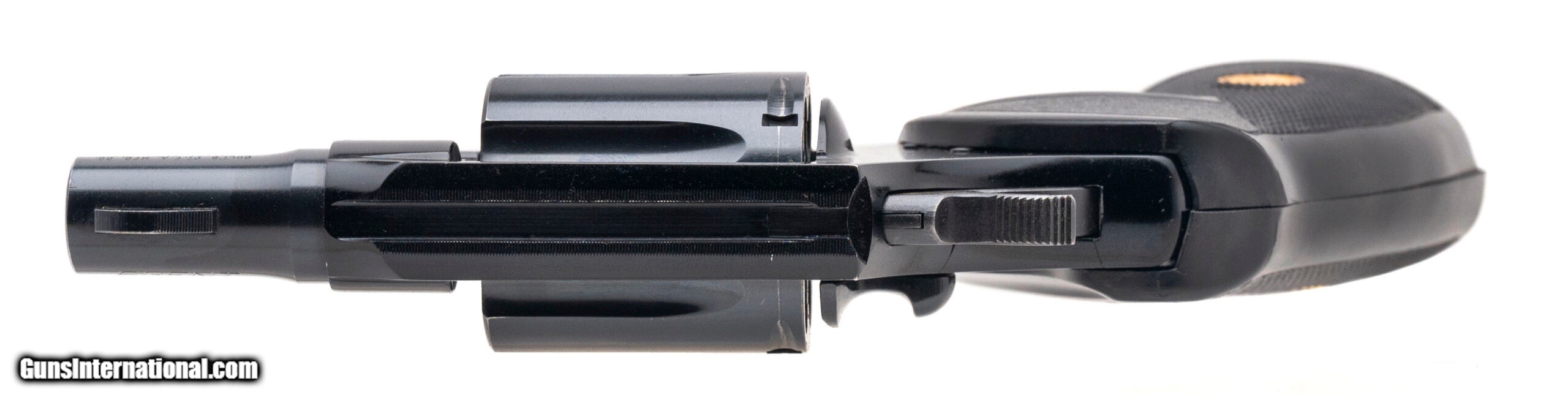 Description: "SN: 161841LW. Made in 1965, .38 Special with a 2"" barrel. Alloy frame snubnose revolver with blue finish and Colt rubber grips. Very good condition. SOLD |