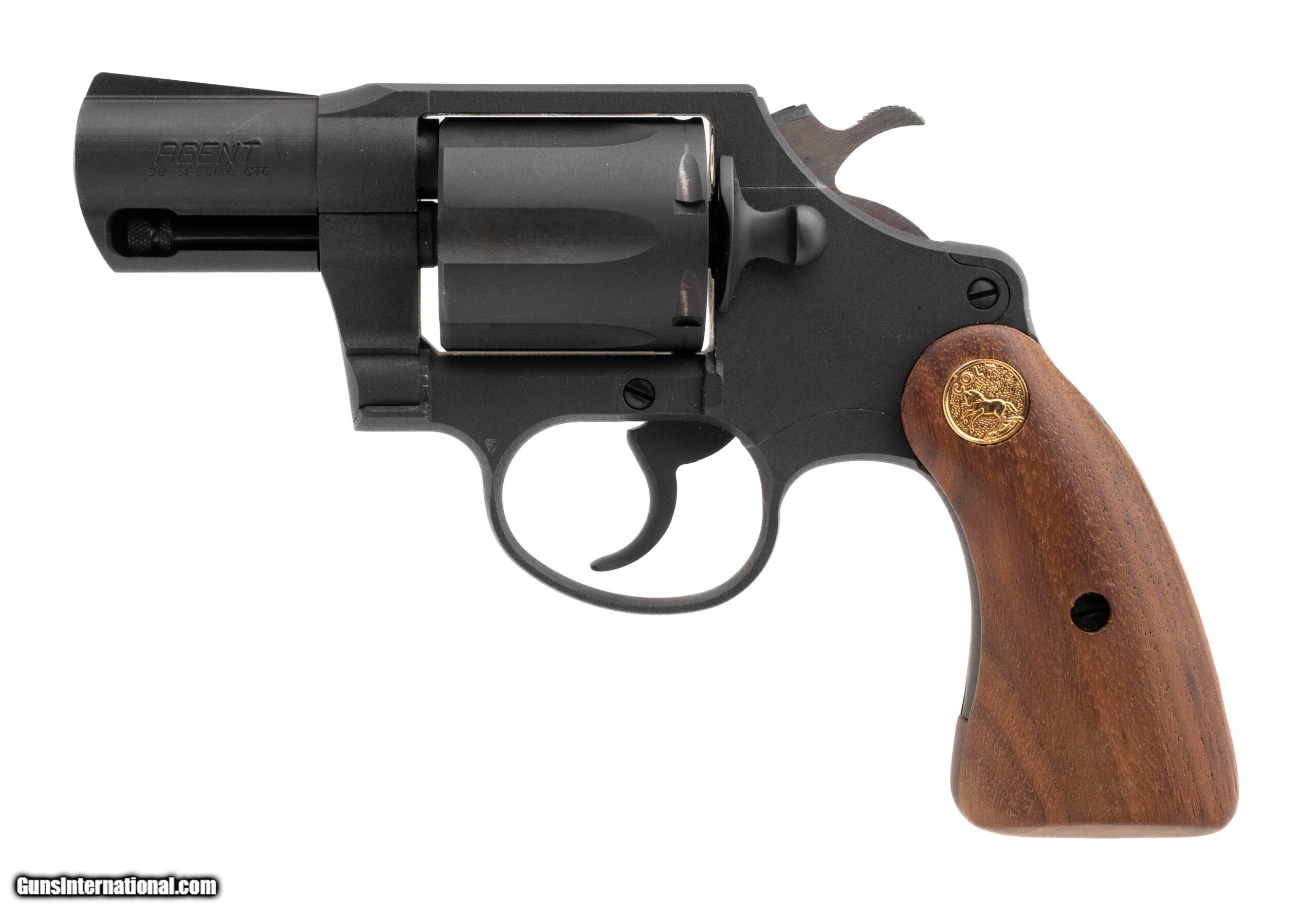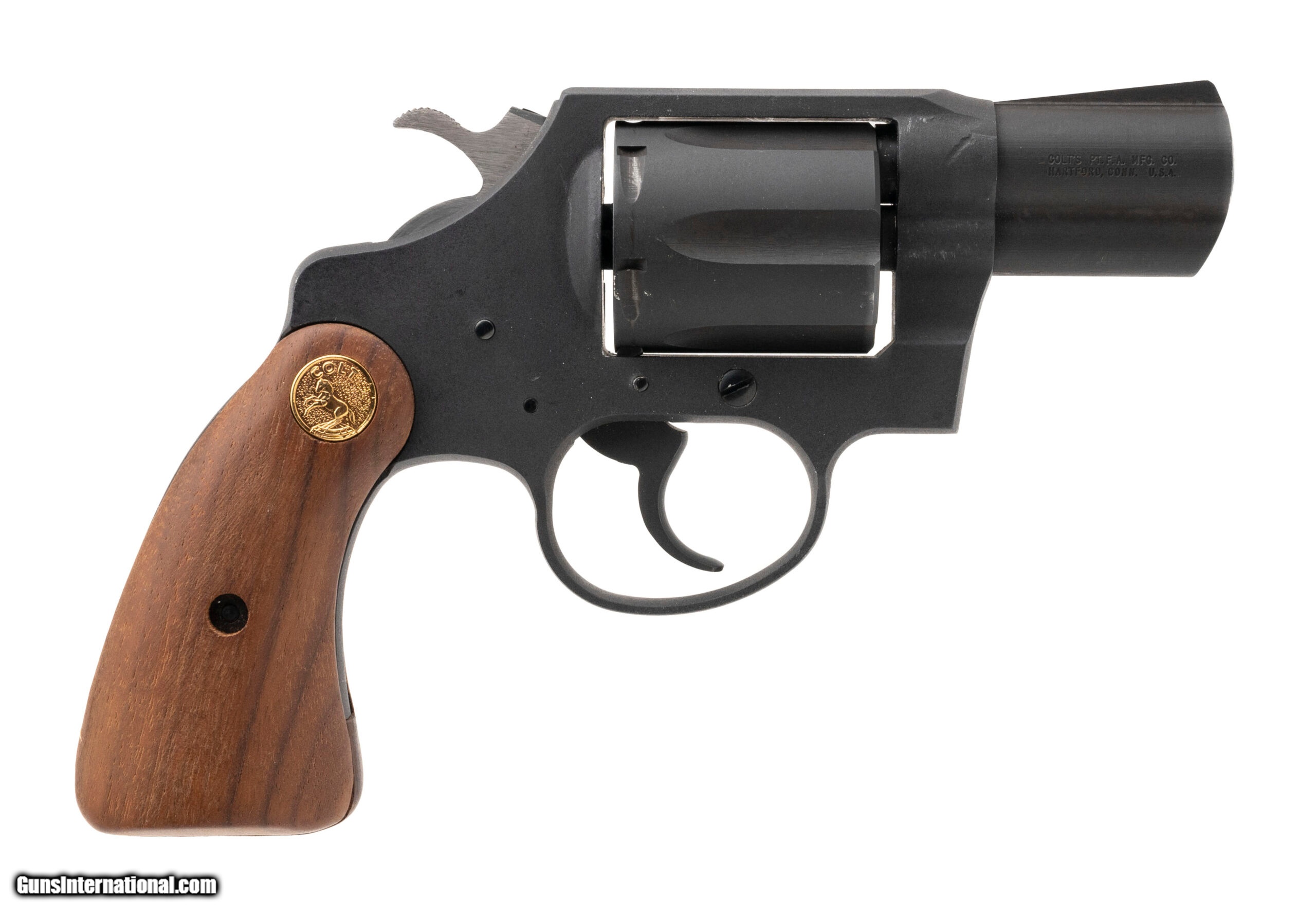 Description: "SN: AB06326. Made in 1985. .38 Special with a 2"" barrel. Bore is bright with strong rifling. Light weight snubnose Colt revolver with alloy frame. Parkerized finish is in very good condition with light handling wear noted. Grips are in excellent condition. Comes with original box, and paper work. Overall very good condition. SOLD |