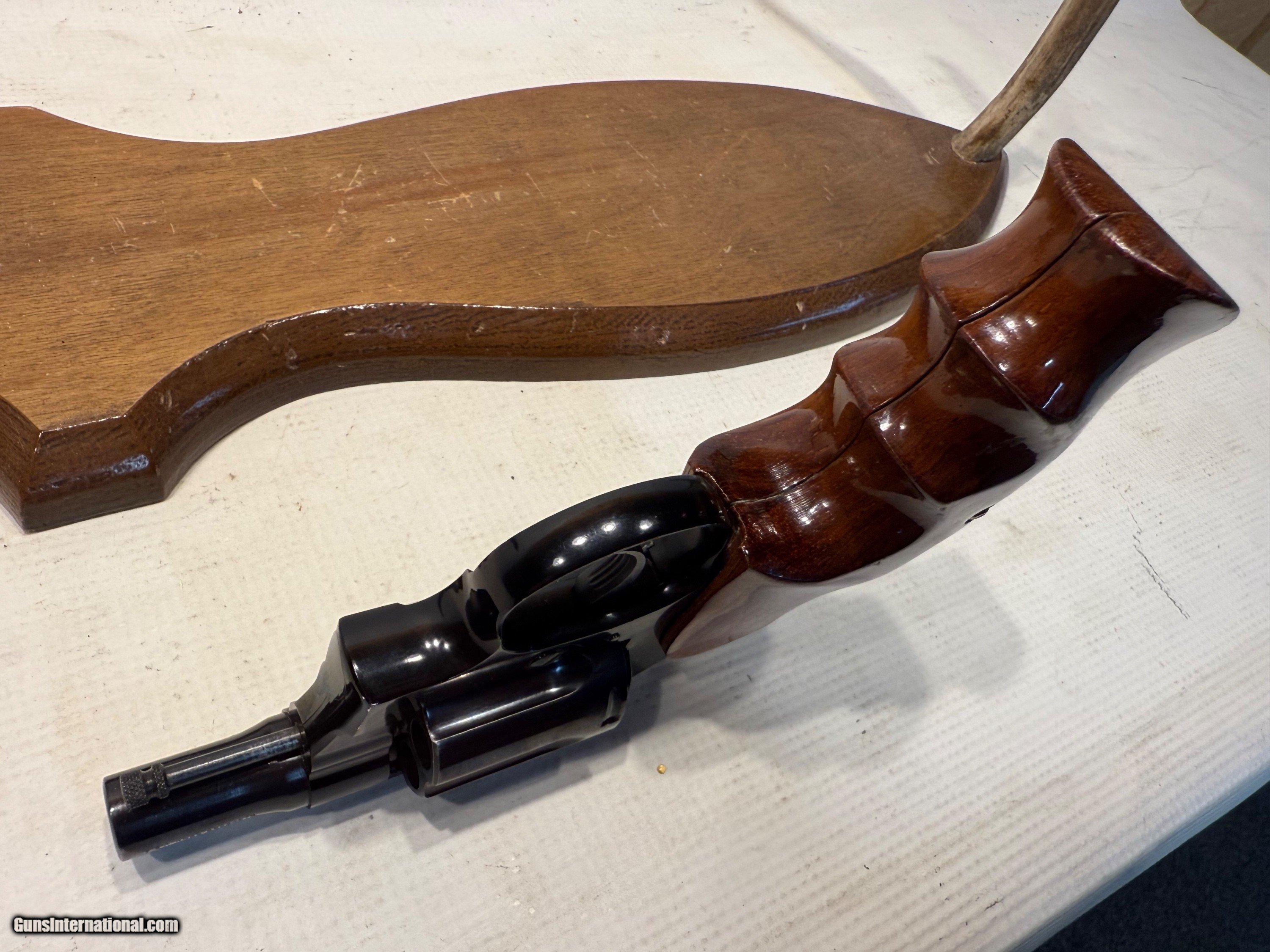 Description: Here we have a Colt Agent Ultra Lightweight chambered in 38 Spl. This revolver features a 2" barrel, 6 shot, fluted cylinder, blued finish, ramp front, custom grips, exposed ejector rod, double action, external hammer, and manufactured between 1962 and 1972. This revolver is in good condition! The reciever and cylinder show some wear/use and are rated at 80% +/- condition. The bore looks clean and is in 95% +/- condition. The grip is custom and shows some imperfections. The grip is rated at 80% +/- conditon. Overall, this revolver is in 85% +/- condition. Please call with questioins before purchasing. Handgun Caliber: .38 Special Manufacturer: Colt Model: Agent Ultra Lightweight Serial Number: 54362 Barrel Length: 2” Condition: 85% +/- Metal Condition: 80% +/- Wood Condition: 80% +/- Bore Condition: 95% +/- Action: Double Action Manufacture Date: 1962-72 Price: $950.00 Buy Now Contact Seller |