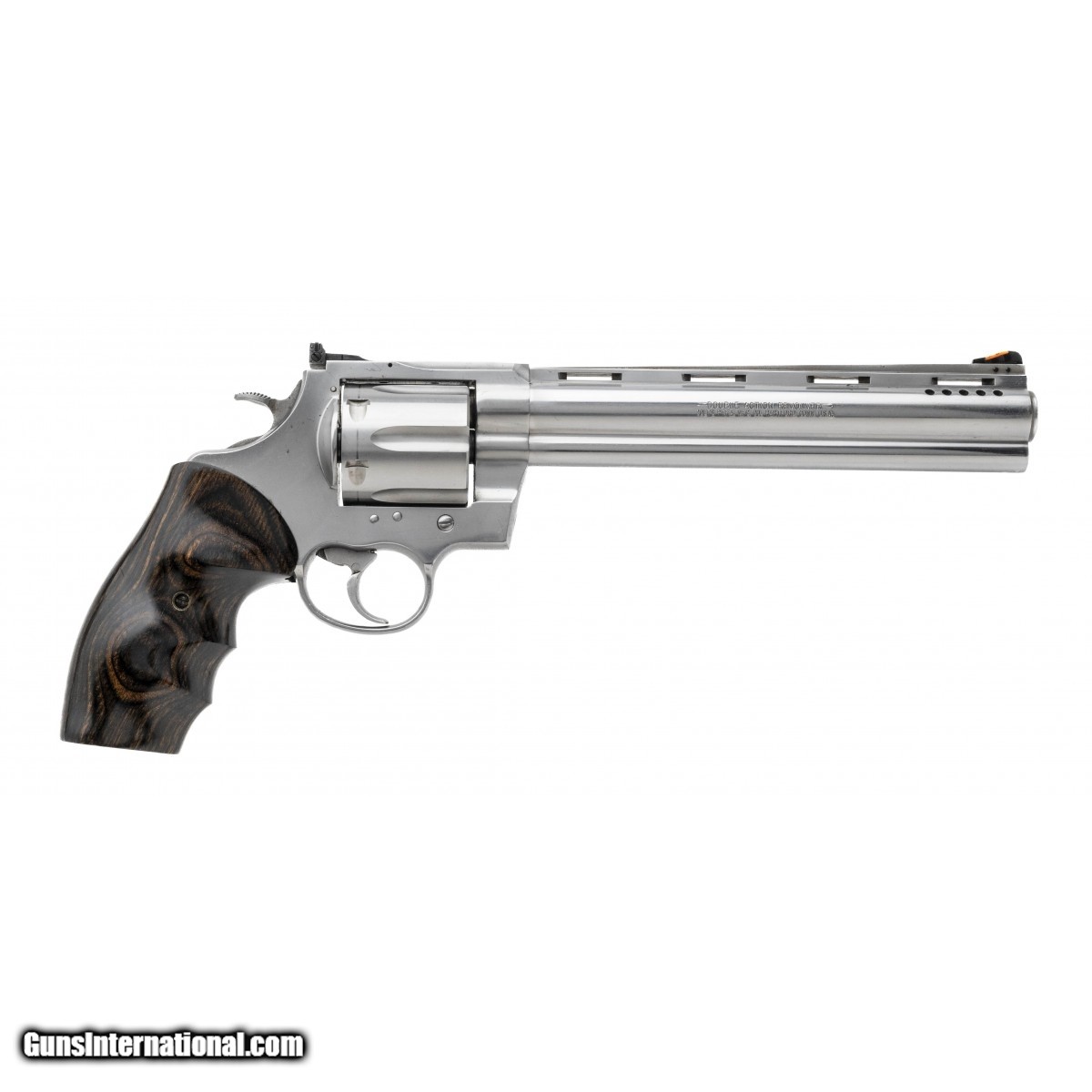 Description: "SN: AN08612. Made in 1999. .44 Magnum with a 8"" vent rib ported barrel. Bore is in excellent condition. Colt double action stainless snake gun. Metal is in excellent condition. Custom grips are in excellent condition. Overall condition is excellent. (Consignment) SOLD |