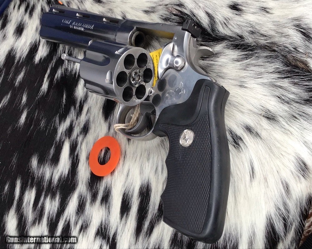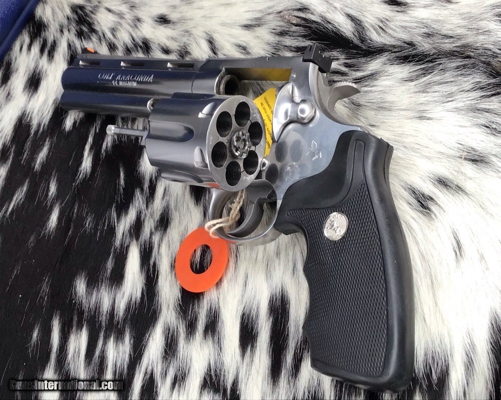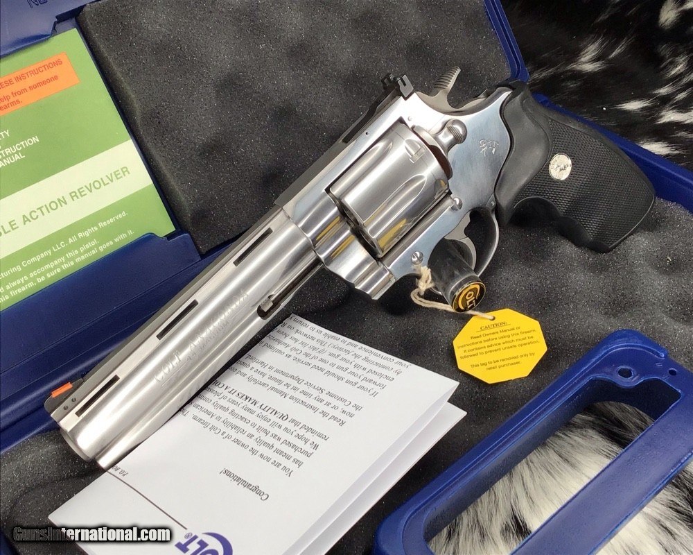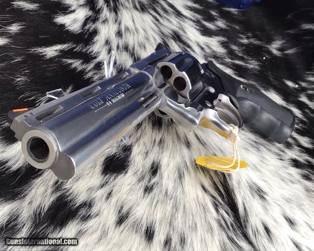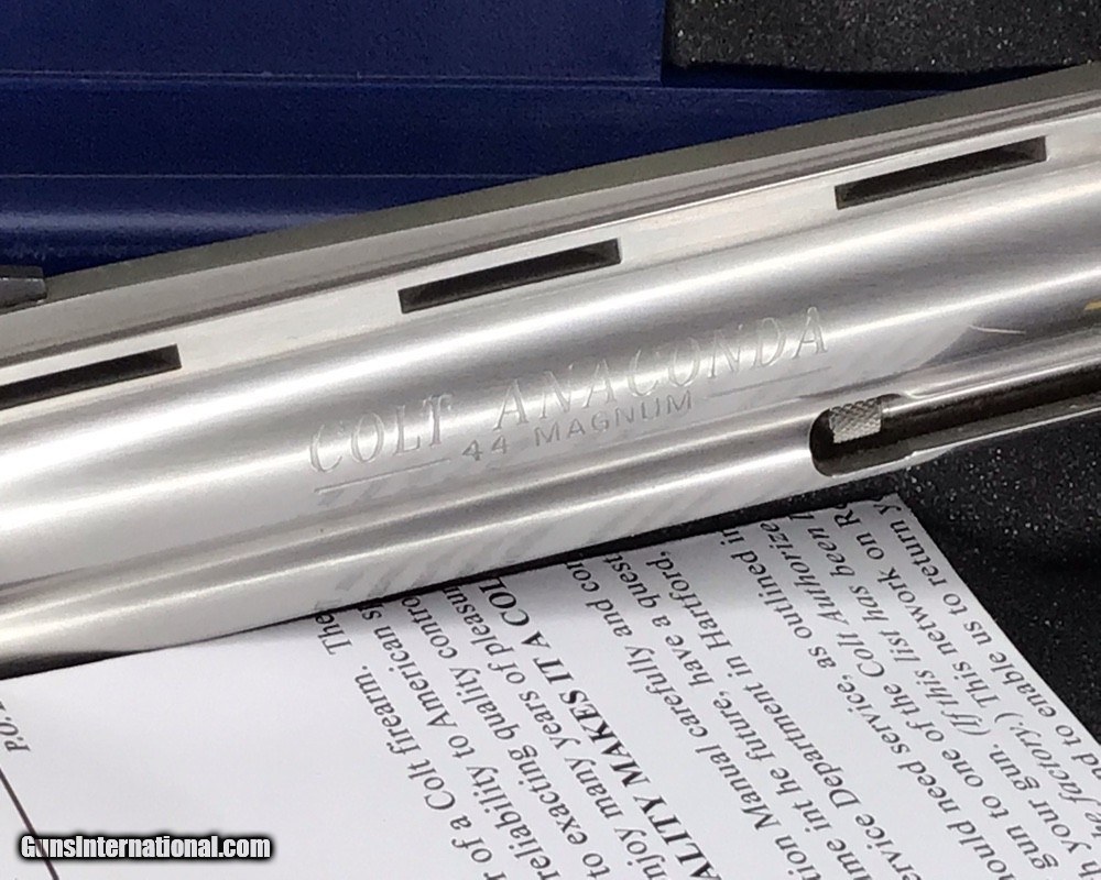 Description: Gorgeous 98% condition 1993 Colt Anaconda wearing a six inch vented rib barrel and adjustable sights. Stainless steel construction for easy maintenance. Factory shock absorbing rubber grips with Silver Ramparts medallions. In Colt Blue hardcase with manual and welcome letter. Made in the USA. Add 3% if paying with credit card. God Bless America from a proud American, and a Viet Nam Vet , thankful for our freedoms.. paid for by the Blood ,Sweat and Tears of our brave men and women in uniform. Ten Below Firearms is a Veteran owned and operated business. We specialize in out of production models of high quality firearms. We love to ship! If you are out of state or can't make it to our store, just give us a call! Handguns normally ship for $30 and Long guns for $40 to $65 for extra length long guns. That's 2-3 day USPS Priority shipping, Delivery conformation and with tracking number. Optional Postal insurance is additional $1.70 per $100 and highly recommended. We are OPEN BY APPOINTMENT ONLY FOR IN PERSON VISITS SOLD Handgun Caliber: .44 Remington Magnum Manufacturer: Colt Model: Anaconda Serial Number: MM51981 Barrel Length: 6 inch Condition: Excellent Metal Condition: Excellent Bore Condition: Excellent Action: DA/SA Finish: Satin Stainless Sights: Adjustable Manufacture Date: 1993 Case: Colt Blue Hard Case Item Location: Mn |