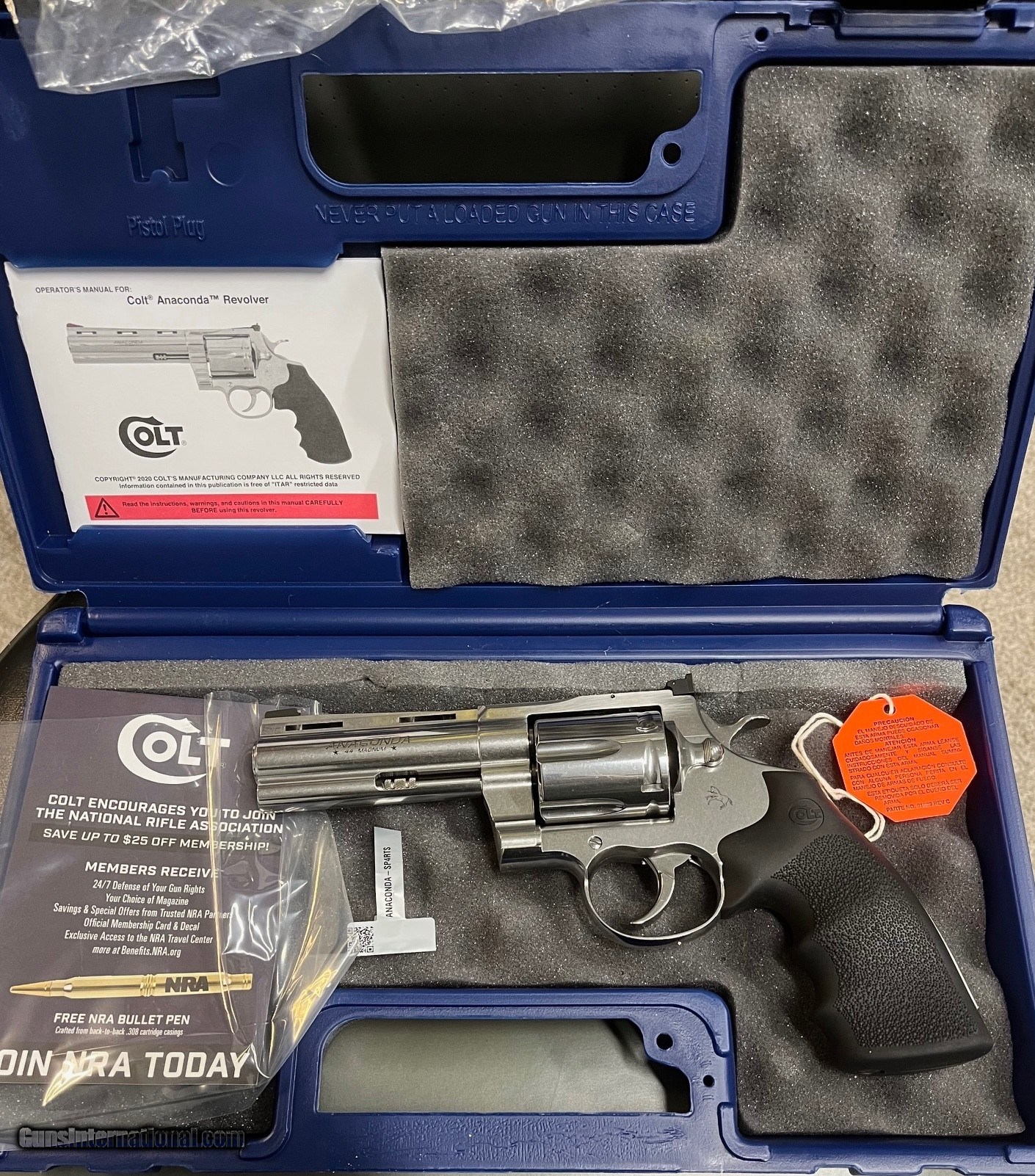 Description: New release 4.25” barrel Colt Anaconda 44 magnum. Includes Wilson Combat front and rear sights ($200.00). 18 rounds fired. Selling because I’m reducing the amount of different ammo caliber firearms I own. Top of the line .44… $1300.00 shipped. That’s about $400.00 off of this Colt (including sights). Offers accepted. SOLD Handgun Caliber: .44 Remington Magnum |