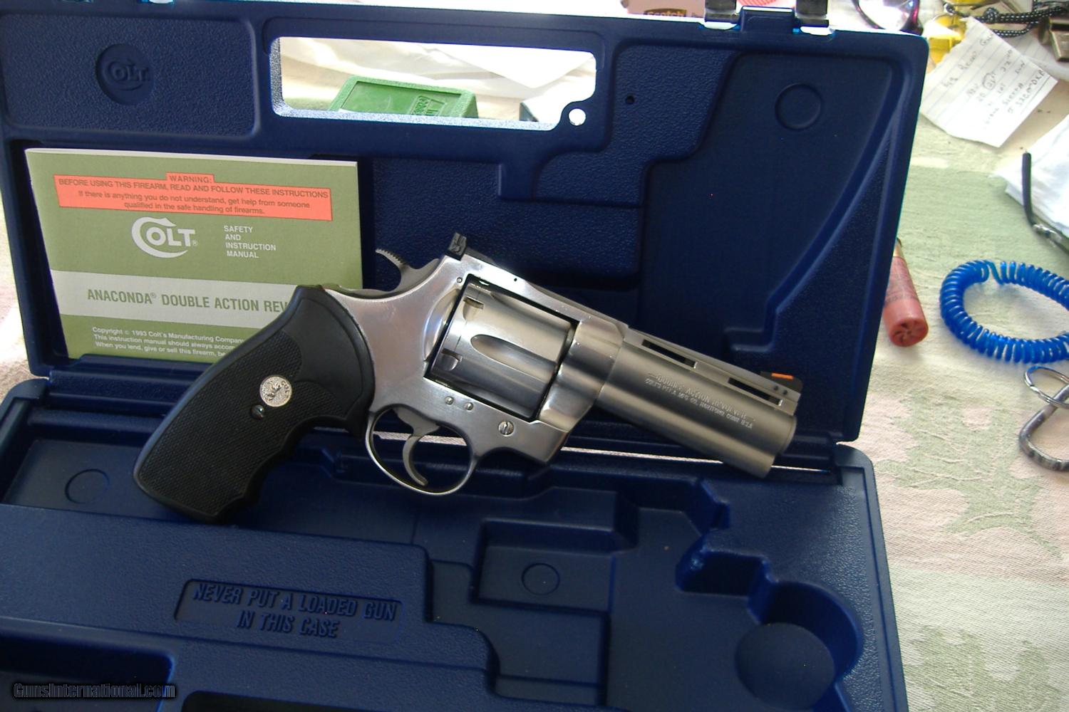 Description: Hard to find 4" Colt Anaconda 44 Mag, Like new in original box with paperwork. Even has receipt from 1994. Gun looks brand new. I would list it as new in box but not sure. Hard to find a nicer one than this. ( See Photos). $2495 + $25.00 Shipping & Insurance. Will trade for gold & silver. SOLD SOLD |