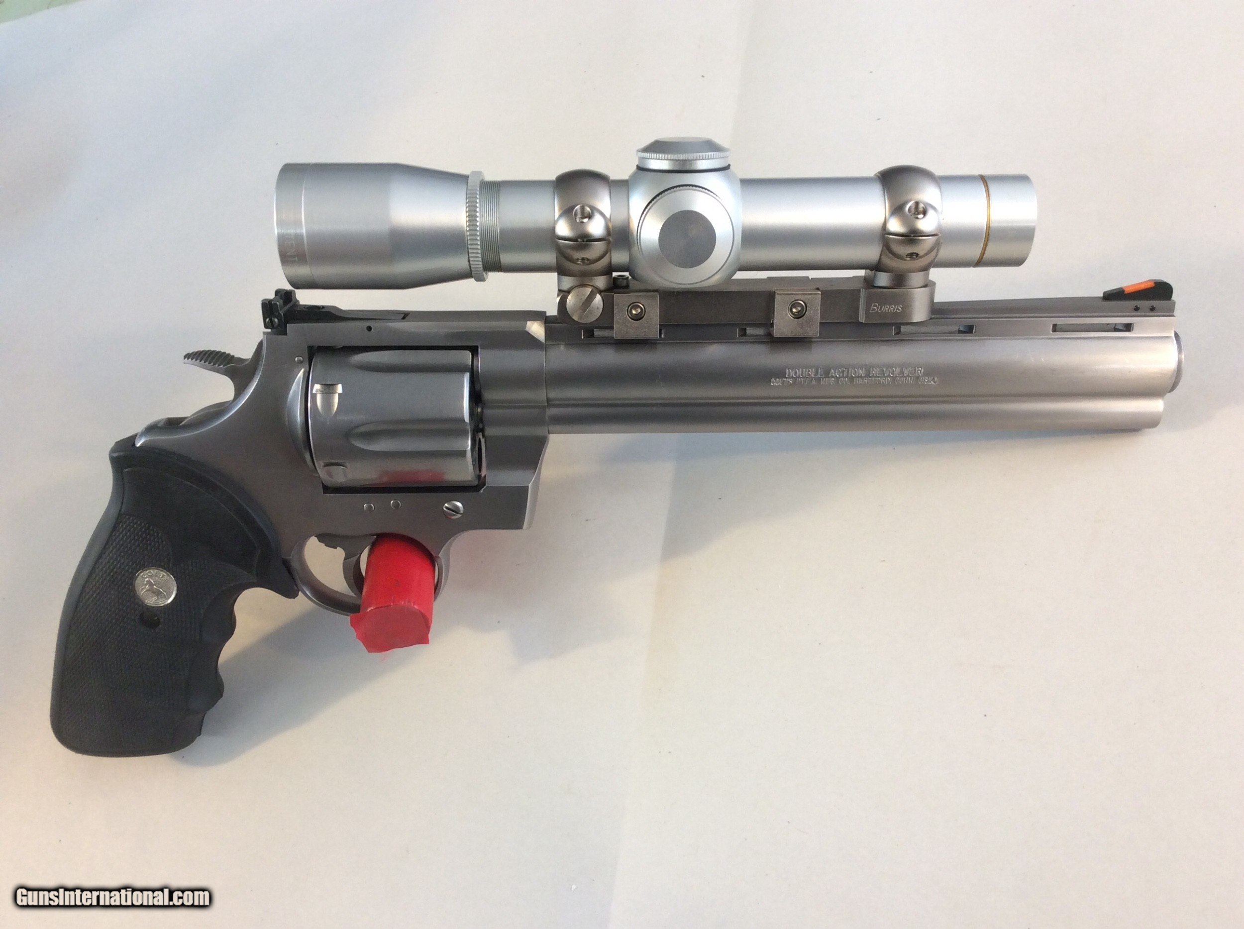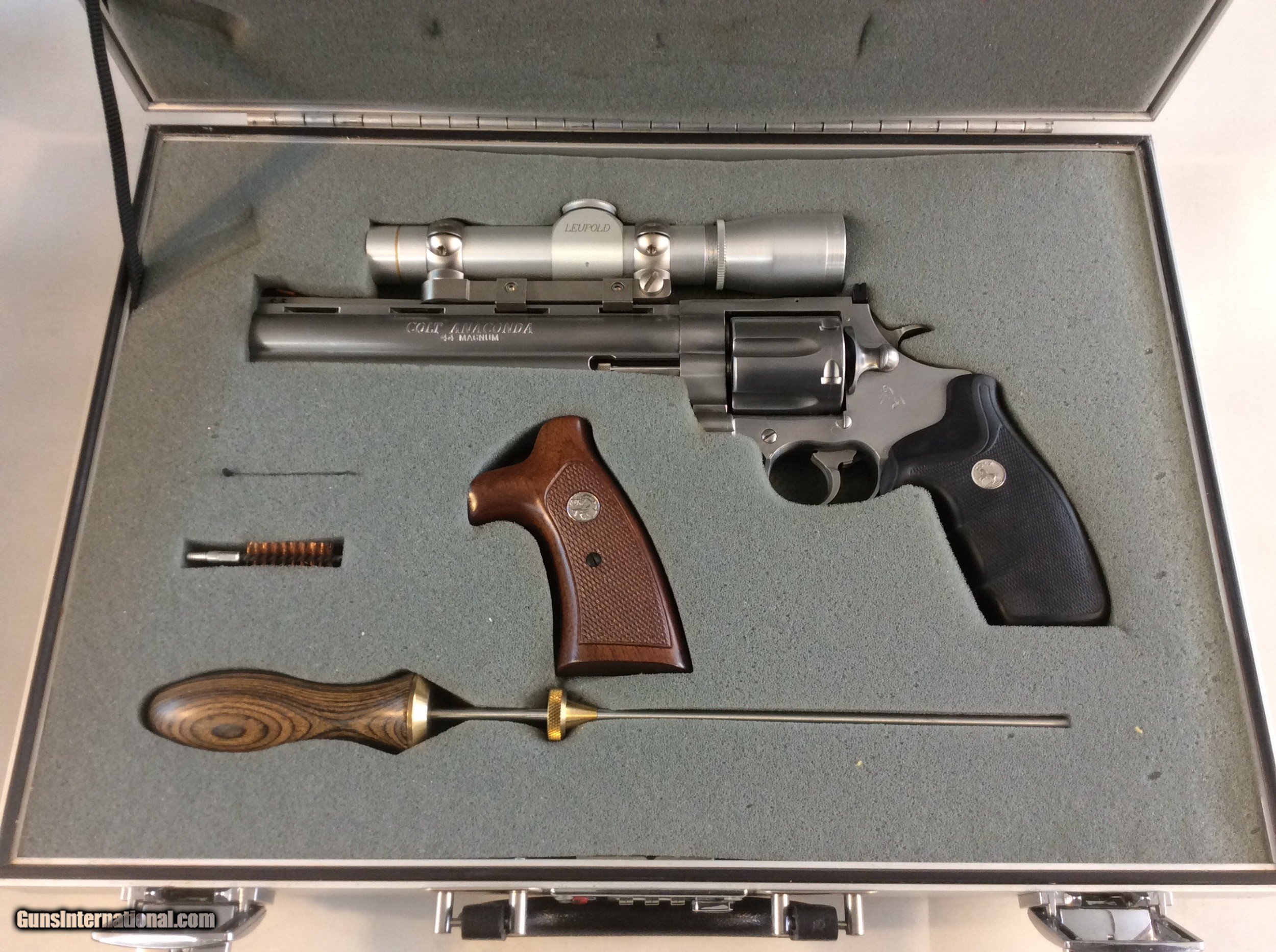 Description: For you viewing from a estate is a very nice Anaconda Hunter with 2X EER LEUPOLD scope and carry case. Revolver in excellent condition. All factory additional tools and cleaning rod are in place. Good choice if you want o hunt with a Colt, or shoot paper. ALSO A VERY GOOD INVESTMENT!!! Call or email for more info etc. thanks for looking SOLD |