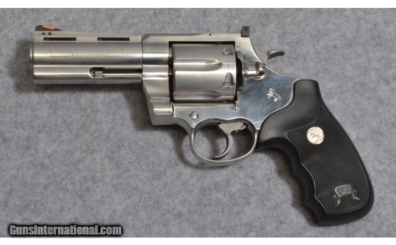 Description: SOLD Caliber Info: .44 Mag. Metal Condition: Excellent Bore Condition: Excellent Barrels: 4 Stock: Colt rubber combat grips Weight: 2 lbs. 15 ozs. Extras: Comes with box Item Location: Tulalip, WA |