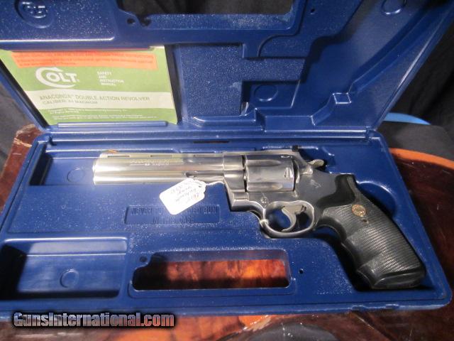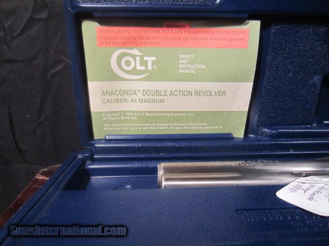 Description: Colt Anaconda caliber 44 Mag, barrel length 6" overall excellent has been fired with light drag line on cylinder. Has factory box and manual. Need more information Please call our office 716-941-3946 SOLD |