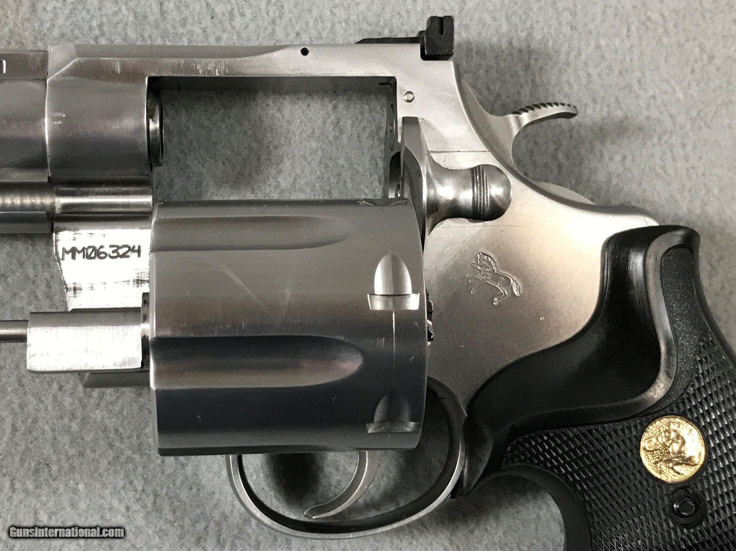 Description: Colt Anaconda .44 Rem. Mag. 6" Barrel 53oz Mfg. 1991 With factory hardcase and manual. Steel is in excellent condition with minor handling marks, rub spots and a cylinder ring. Grips are excellent. Bore is excellent. This gun has been used but has been well cared for. $40.00 S&H SOLD Handgun Caliber: .44 Remington Magnum Manufacturer: COLT Model: ANACONDA Serial Number: MM06324 Barrel Length: 6 Condition: EXCELLENT Metal Condition: EXCELLENT Bore Condition: EXCELLENT Action: DOUBLE ACTION Weight: 53oz Sights: RR/WO Manufacture Date: 1991 Extras: BLUE HARDCASE |