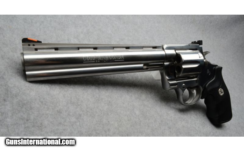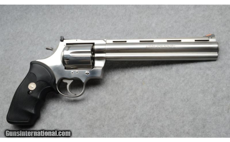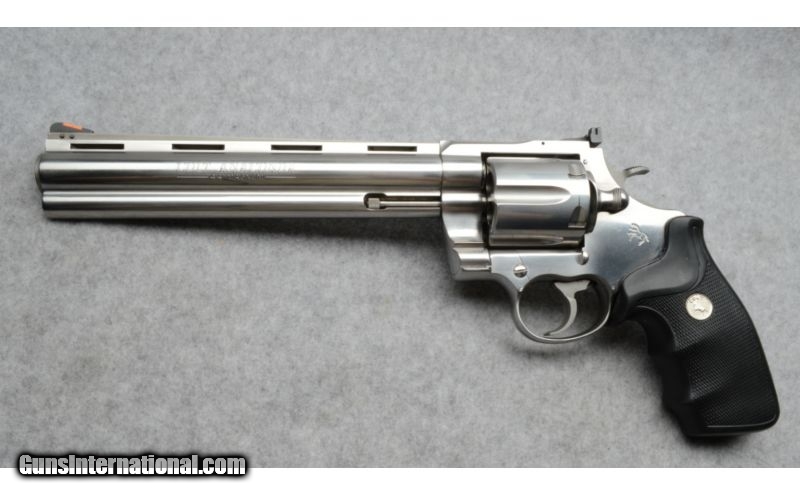 Description: SOLD Caliber Info: .44 Remington Magnum Chambers: 6 Rounds Metal Condition: Excellent Bore Condition: Excellent Bright Barrels: 8 Inches. Triggers: Double Action / Single Action Stock: Black rubber with silver Colt medallions. Weight: 3 lbs. 13ozs. Sights: Red ramp front Adjustable rear. Extras: Hard case Item Location: Hamburg, PA |