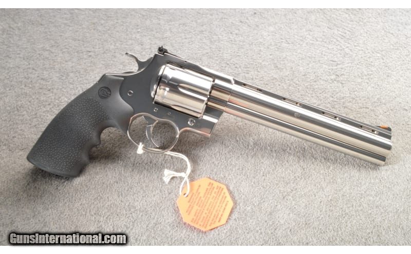 Description: COLT Anaconda chambered in 44 Magnum with an 8"vent rib barrel. This DA/SA revolver has been re-designed with the oversized stainless steel Python action. The frame is drilled and tapped for mounting optics. Some features are; a recessed target crown, smoother trigger pull, user-interchangeable blade front sight, adjustable square notch rear sight, and a three finger rubber grip with the COLT logo at the top. This gun comes new in the factory hard case with paper work, owners manual and cable lock. Unfired condition. .44 Magnum SOLD Chambers: 6 shot revolver. Metal Condition: Like new. Wood Condition: Like new. Bore Condition: Like new. Barrels: 8" barrel. Triggers: SA/DA. Weight: 3.75 Lbs Item Location: Owatonna, MN |