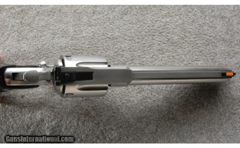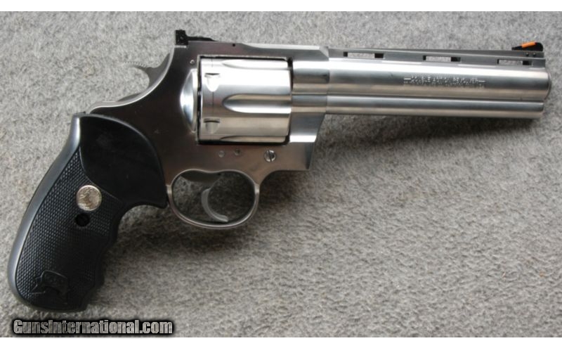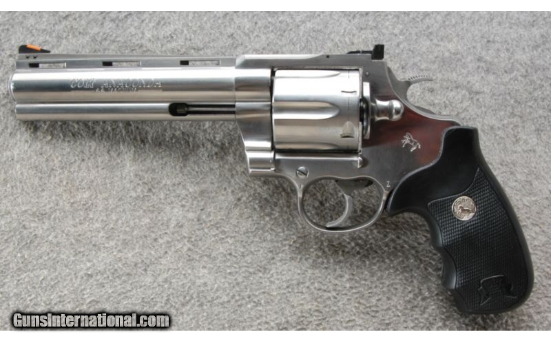 Description: This is a very nice Colt Anaconda with a 6 inch stainless steel barrel. The revolver is in very nice condition with a light turn line and 1 small mark. SOLD Caliber Info: .44 Rem Mag. Chambers: 6 shot revolver. Metal Condition: Very nice. Wood Condition: The grips are like new. Bore Condition: Bright and shiny. Barrels: 6 inch stainless steel with a vent rib and sights. Triggers: Single for single and double action. Stock: Black Colt grips. Weight: 3 Lbs 4 Oz. Sights: Adjustable rear target and a blade with orange insert front. Extras: Comes with the factory case. Item Location: Owatonna, MN |
