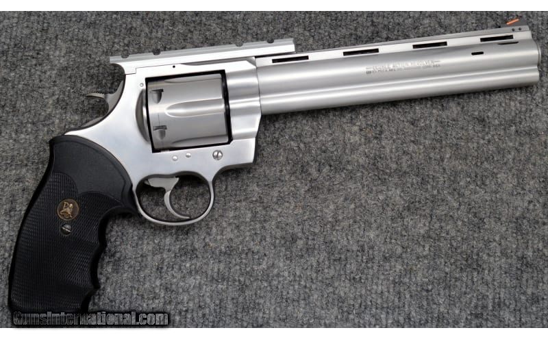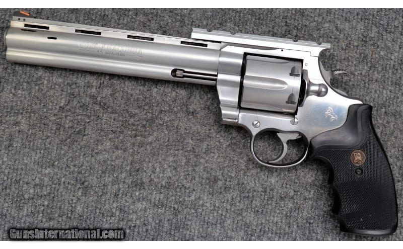 Description: For your consideration, a Colt Anaconda chambered in .44 Magnum. The barrel is Mag-Na-Ported and a Weigand Machine and Design "Canamnt" scope base is fitted in place of the rear sight. This piece dates to 1994. .44 Magnum SOLD Chambers: 6 Metal Condition: Excellent Wood Condition: Excellent Bore Condition: Excellent Barrels: 8 Triggers: Serrated Face Weight: 3.5 lbs Sights: Iron Sights and Scope Rail Item Location: Hamburg, PA |