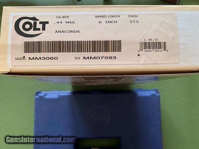 COLT ANACONDA 44 MAGNUM, 6” STAINLESS, NEW UNFIRED, UNTURNED IN THE BOX