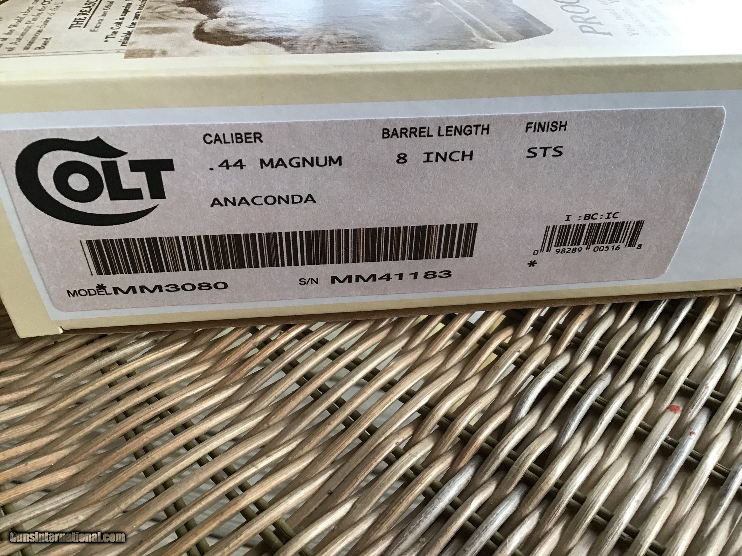COLT ANACONDA 44 MAGNUM, 8" STAINLESS, NEW UNFIRED, UNTURNED, 100% CONDITION IN THE BLUE BOX WITH COLT PICTURE BOX