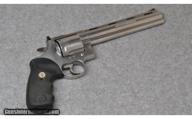 Description: With box SOLD Manufacturer: S/N AN0XXX Caliber Info: .44 Magnum Metal Condition: Good with a Few Scratches to Right Side of Frame Bore Condition: Good, Strong Rifling Barrels: 8" Ported Triggers: Factory Stock: Colt Checkered Rubber Grips Weight: 56 oz Sights: Ramp Front/Adjustable Rear Item Location: Columbus, OH |