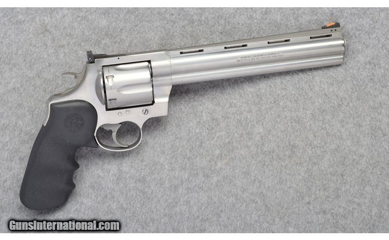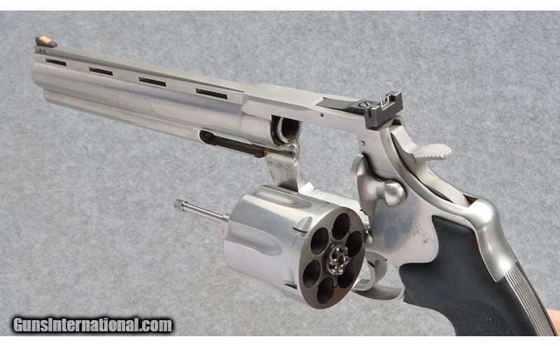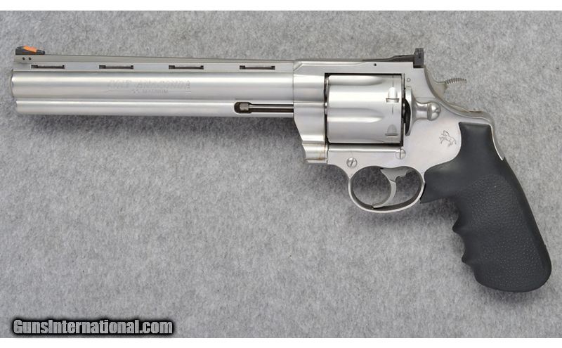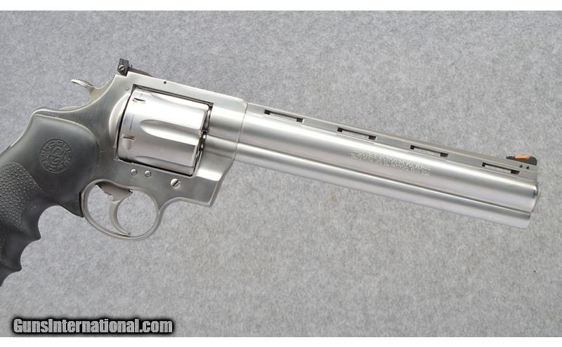 Description: 1992 vintage Anaconda shows scattered light rubs and scratches, some heavy around the trigger guard area. Solid timing and lock-up. .44 Magnum SOLD Metal Condition: Brushed Stainless Bore Condition: Bright Sharp Barrels: 8 Inch Triggers: DA/SA Weight: 58 oz. Sights: "White outline adjustable rear sight, Red ramped front Item Location: Buda, TX |