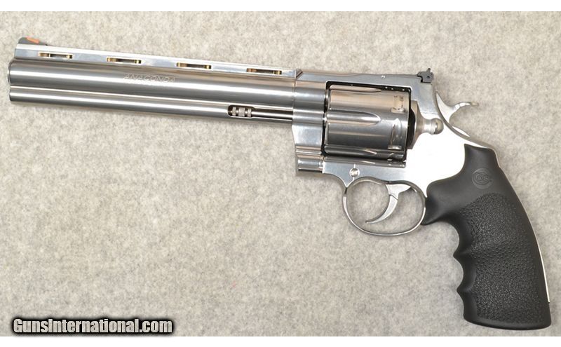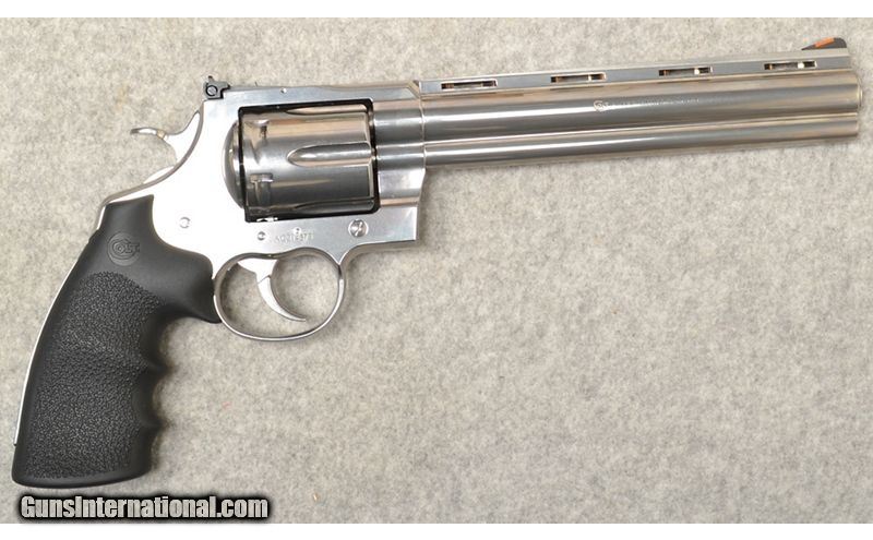 Description: This Colt Anaconda is in excellent condition and will make a great addition to your collection. The rubber grips are very comfortable and along with the weight of the handgun it helps mitigate the recoil of the powerful .44 Magnum. The longer 8 inch barrel is able to deliver accurate shots on longer ranger targets. The action is very smooth and is followed by a light crisp trigger break. .44 Magnum SOLD Chambers: .44 Magnum Metal Condition: Excellent Bore Condition: Excellent Barrels: "Rifled, 8"" Weight: 2 lbs Sights: Front and rear iron sights Item Location: Columbus, OH |