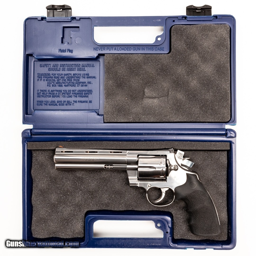 Description: Guns Listing ID: 913572 Colt’s popular Snake Gun revolver series gains a new addition with the updated Anaconda. The 2021 Anaconda has been fully re-designed to utilize an oversized Python action. Bulked-up with a solid stainless steel frame for strength and durability, this DA revolver is worthy of its pedigree. Experience the Linear Leaf Spring Action for a non-stacking, smooth-as-glass trigger pull. With recoil-absorbing Hogue grips and adjustable, interchangeable sights, this .44 Magnum is cool and comfortable from the range to the woods. A recessed target crown offers protection and the frame is drilled and tapped for optics mounts, making the Anaconda an unstoppable huntsman’s sidearm. This listing is for a modern production Colt Anaconda with a 6” barrel. The original case is included. Originally purchased in 2022. Get the best bang for your buck when you get a Certified Used Firearm . When you see the Certified Used stamp on any of our firearms, you can be confident that you’re getting exactly what you want – a gun only in very good to excellent condition and held to the highest quality standard. All Certified Used Guns come with a ‘no questions asked’ return policy . PLUS, ALL CERTIFIED USED GUNS SHIP FREE! SOLD Manufacturer: COLT Model: ANACONDA Caliber Info: .44 MAGNUM Condition: Used - Non-Certified Barrels: 6 BARREL Finish: STAINLESS |