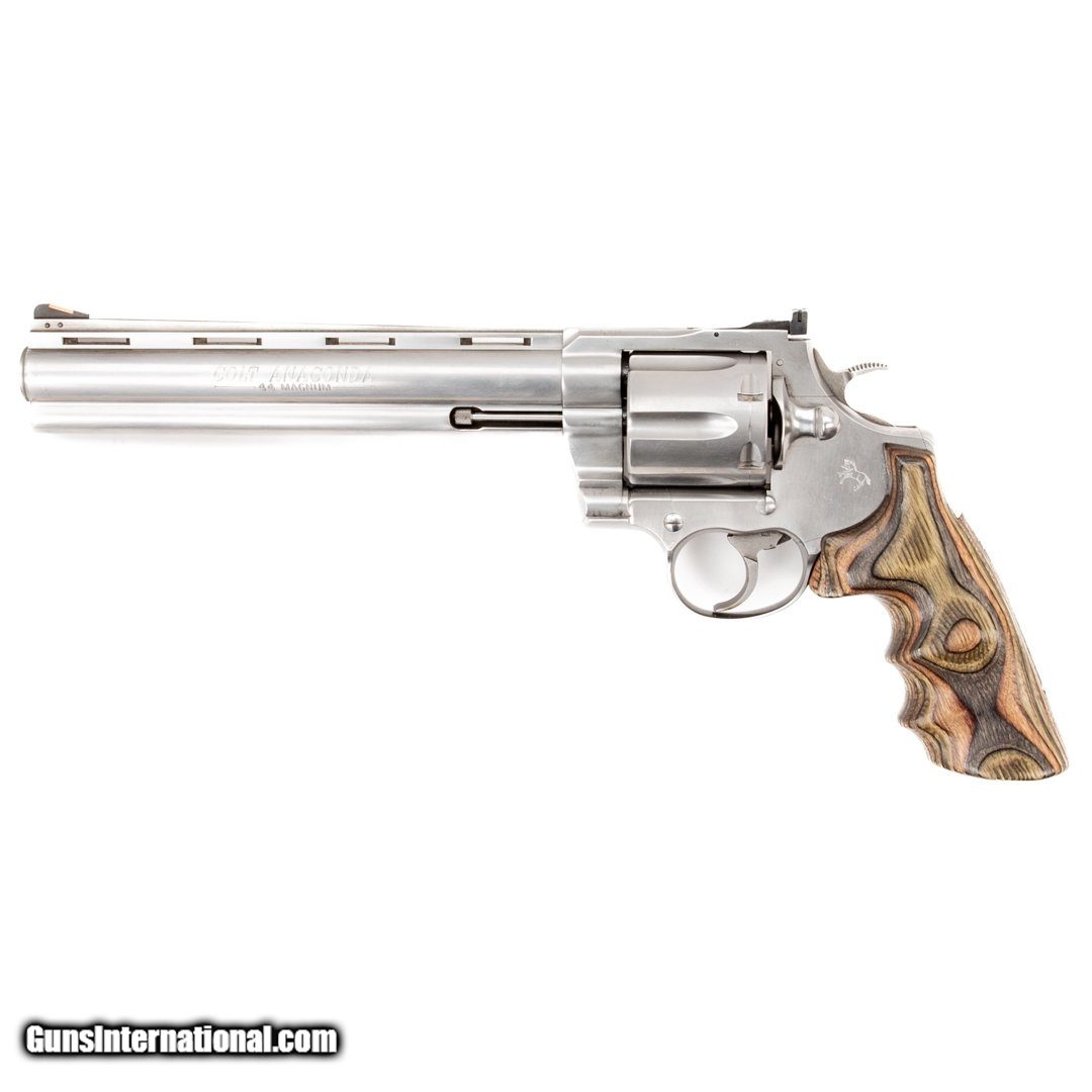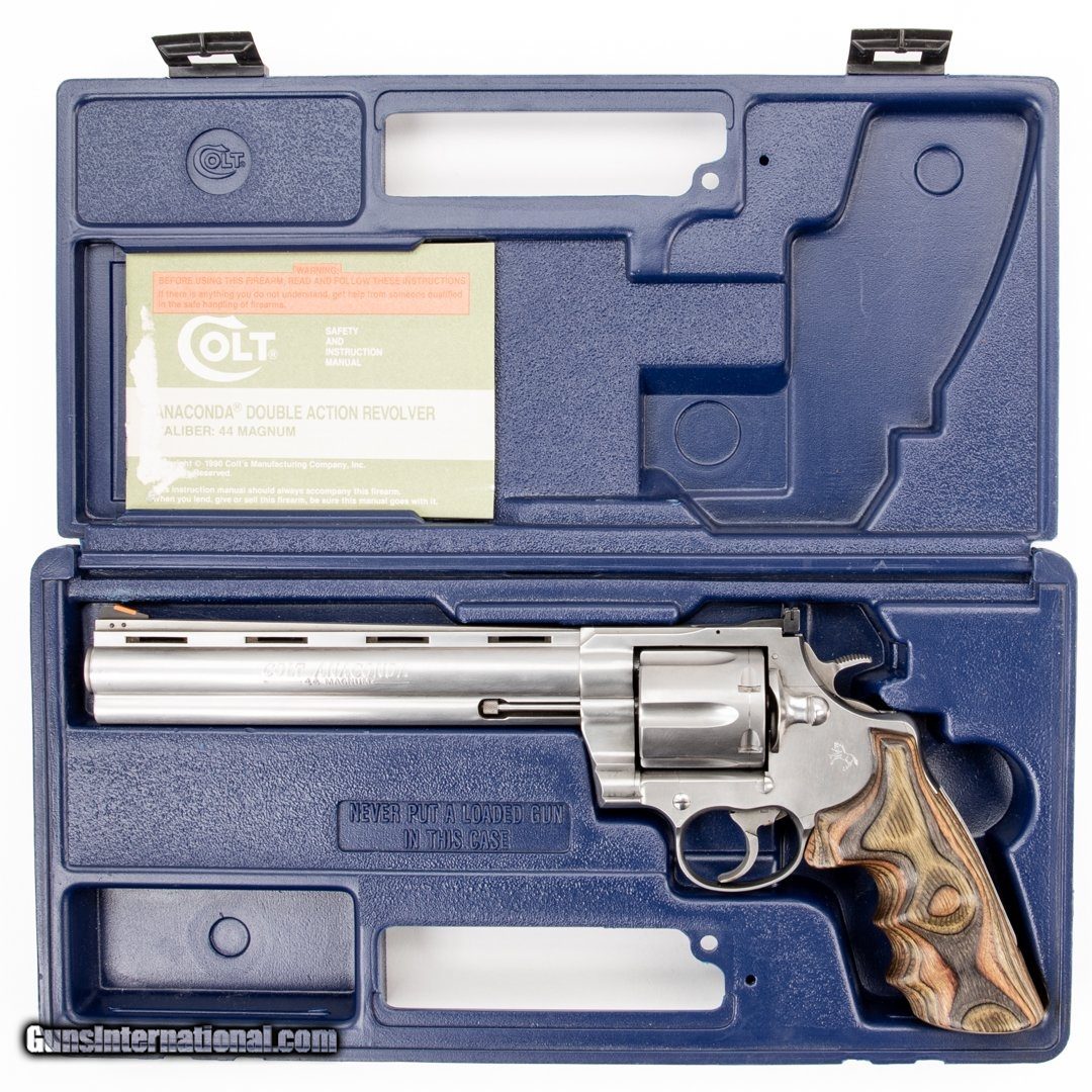 Description: Guns Listing ID: 1220422 This Anaconda features wood grips and adjustable rear and red ramp front sights. Purchase includes the original case, owner‚‚s manual, and a right-handed draw brown leather western-style holster. Get the best bang for your buck when you get a Certified Used Firearm . When you see the Certified Used stamp on any of our firearms, you can be confident that you‚‚re getting exactly what you want – a gun only in very good to excellent condition and held to the highest quality standard. All Certified Used Guns come with a ‚‚no questions asked‚‚ return policy . PLUS, ALL CERTIFIED USED GUNS SHIP F SOLD Manufacturer: COLT Model: ANACONDA Caliber Info: .44 MAGNUM Condition: Used - Non-Certified Barrels: 8 BARREL Finish: STAINLESS |