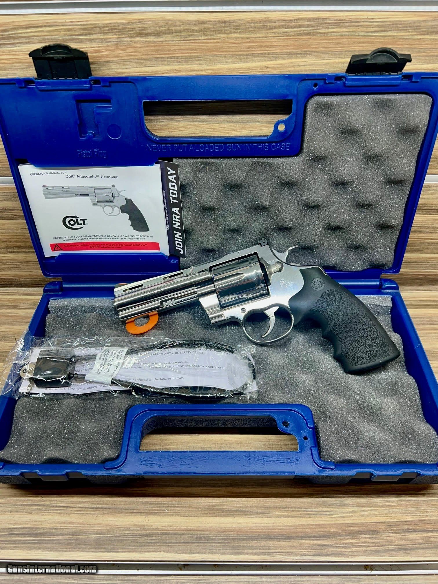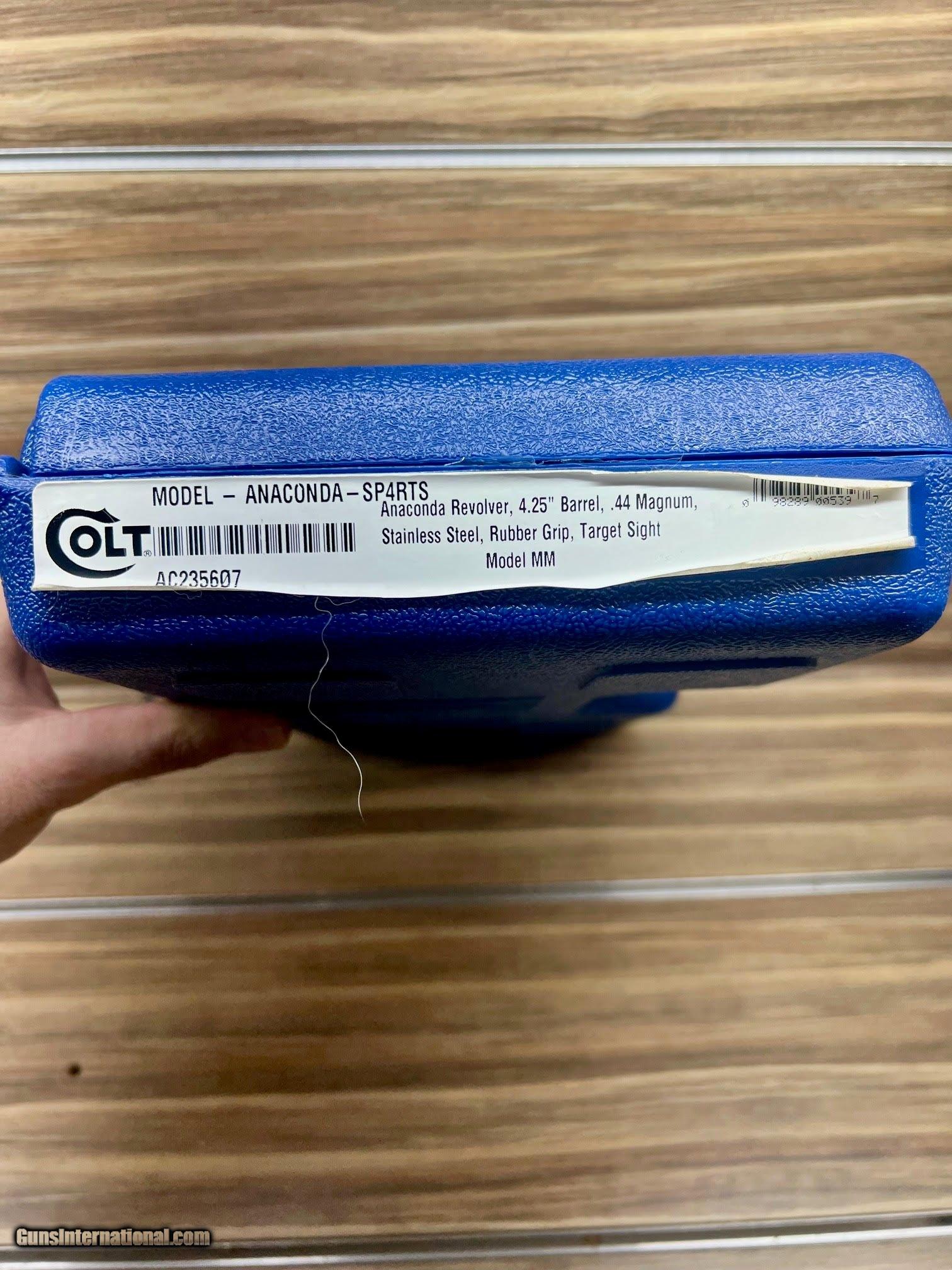 Description: Guns Listing ID: 476487 Colt Anaconda, 44 magnum, 4.25\" Barrel, OEM Box SOLD Manufacturer: COLT Model: ANACONDA Caliber Info: .44 MAGNUM Condition: Used - Non-Certified Barrels: 4.25 BARREL Action: REVOLVER Finish: STAINLESS STEEL |