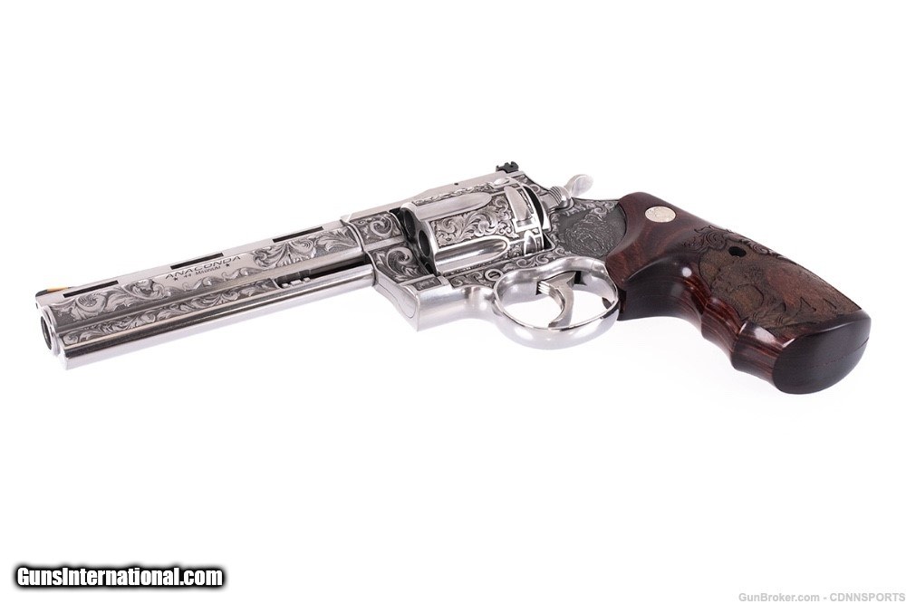 Description: Guns Listing ID: 399884 Colt Anaconda RARE ENGRAVED Grizzly 44 Mag 6\" of Colt Heirloom Series Chambered in .44 Magnum with adjustable rear sights. The Colt Anaconda Grizzly is adorned with deep leaf and vine engraving encompassing the barrel, cylinder, and frame. The majestic grizzly takes center stage and in fine scenic detail on the frame and high gloss walnut grip panels. SOLD Manufacturer: COLT Model: ANACONDA Caliber Info: .44 MAGNUM Condition: new Barrels: 6 BARREL Action: REVOLVER Finish: STAINLESS |