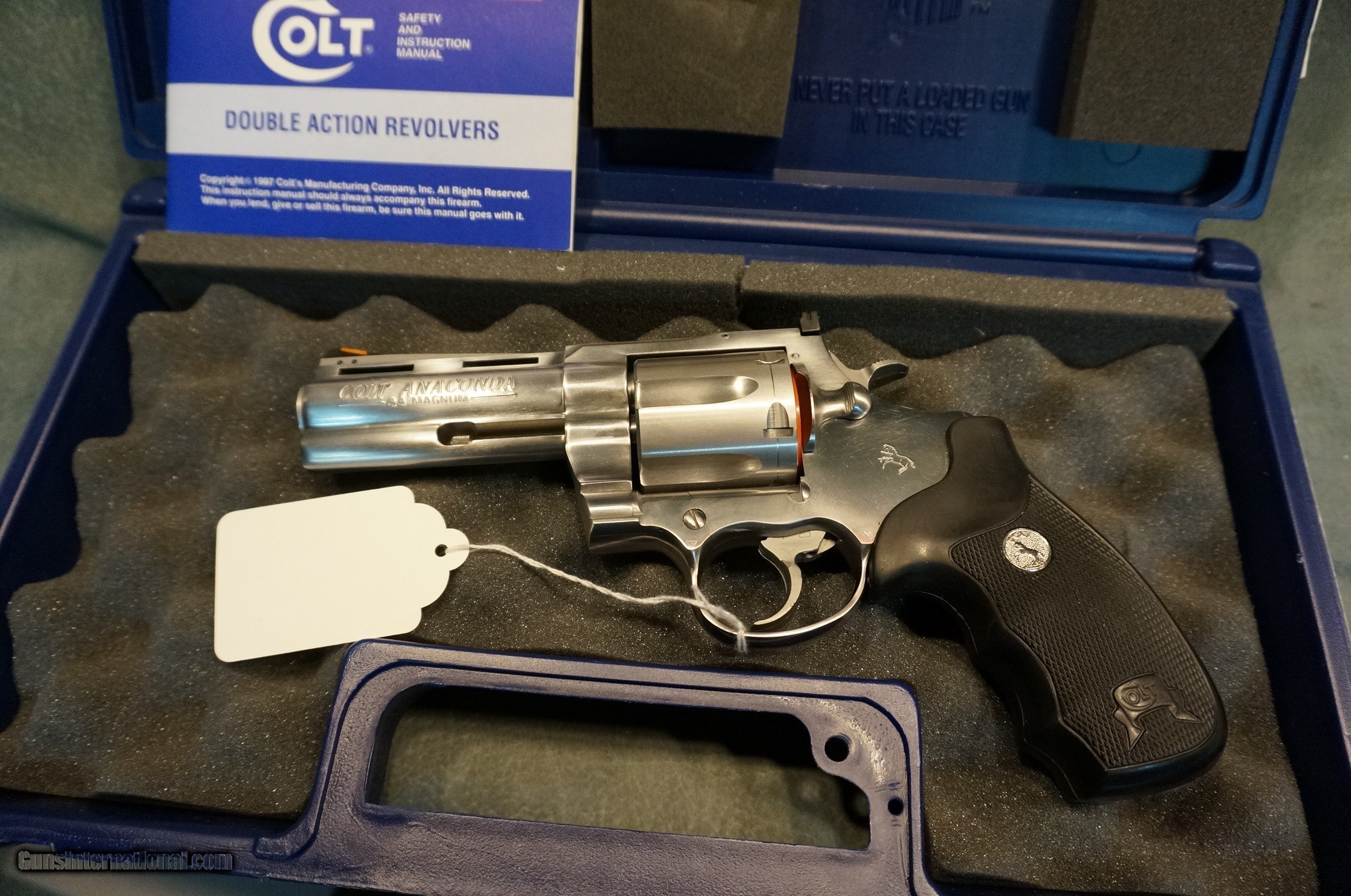 Description: Colt Anaconda 44Mag 4" ported barrel,serial #AN04094,SKU MM3040DT,like new in the box with papers. We buy, sell, consign and trade new and used firearms. This is our 43rd year in business. We offer 90 day layaways with 20% down. No return on layaways. Firearms will need to be transferred through a FFL dealer. Prices reflect a cash discount. There will be 3% added to credit card sales. We trade for gold and silver. Gun collections wanted for cash. THANK YOU! SOLD |
