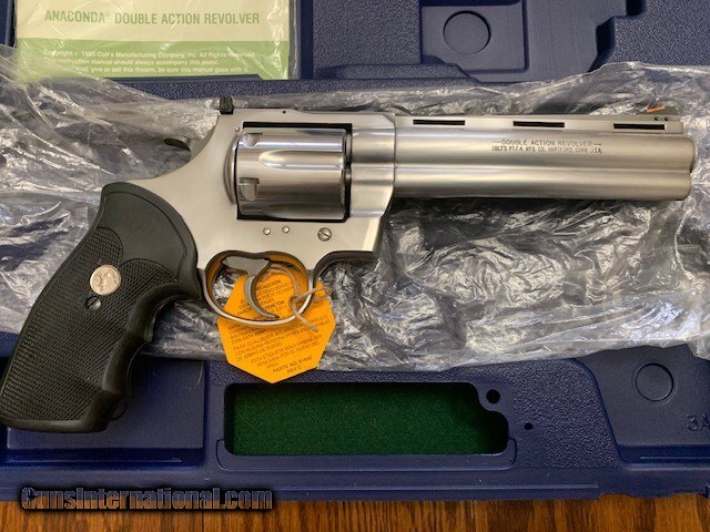COLT ANACONDA 45 LC. CAL, 6” STAINLESS, APPEARS UNFIRED NEW COND. IN THE COLT BLUE BOX WITH COLT PICTURE BOX, COMES WITH OWNERS MANUAL, HANG TAG, ETC.