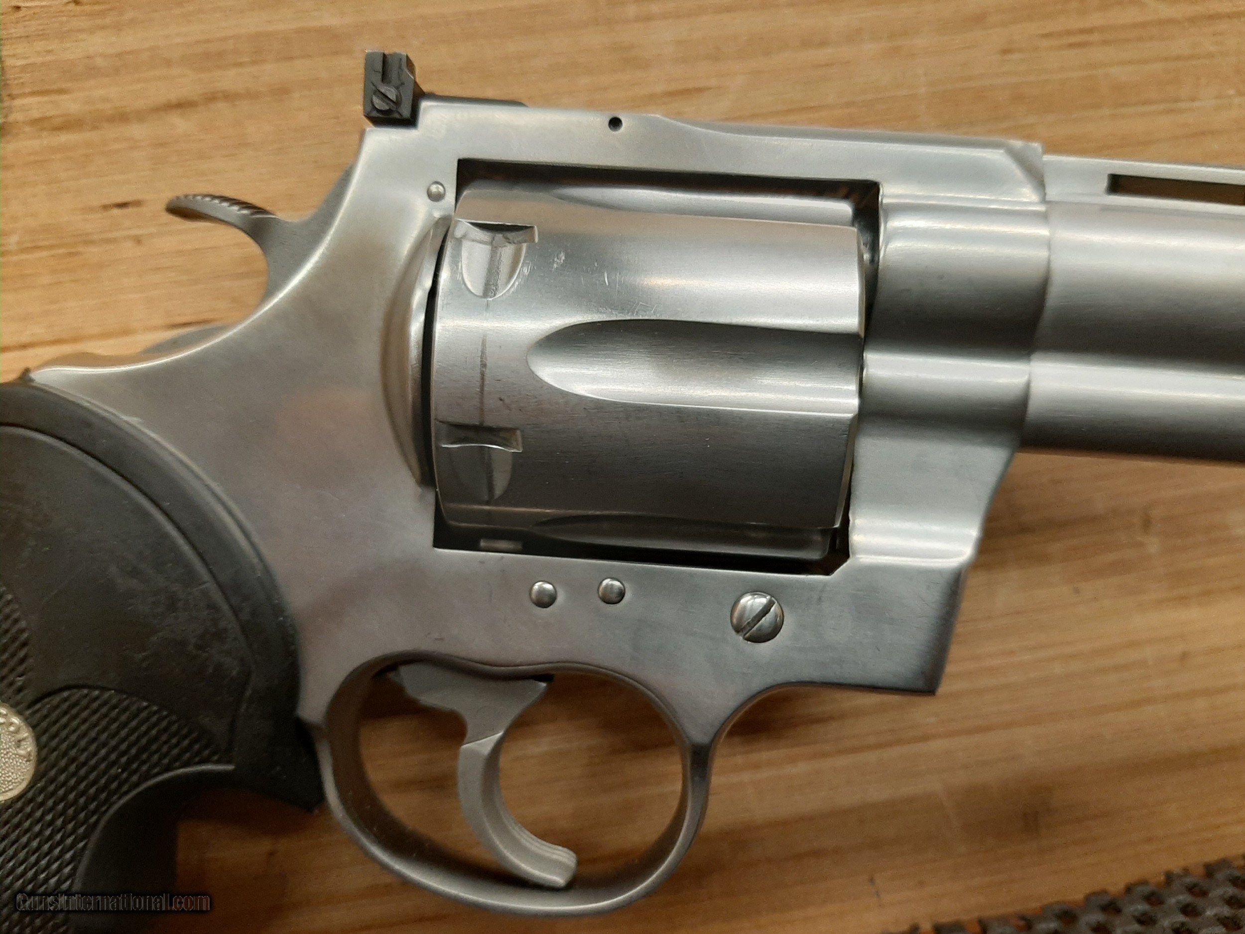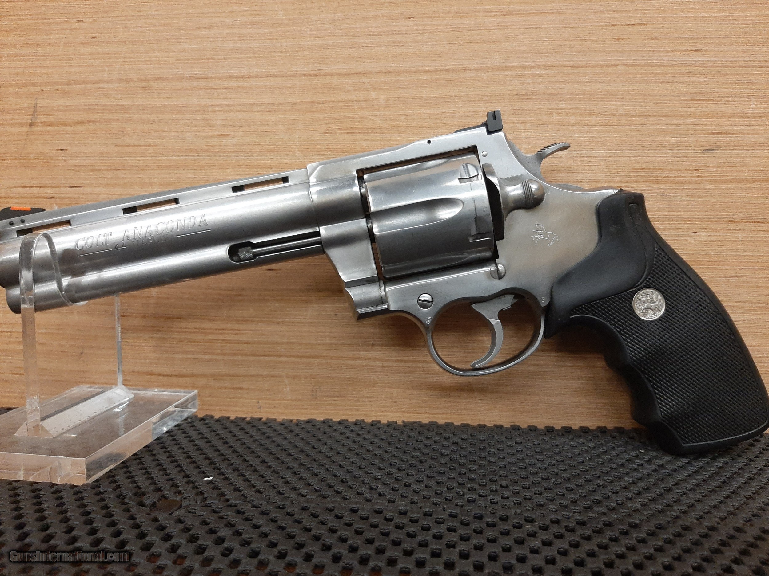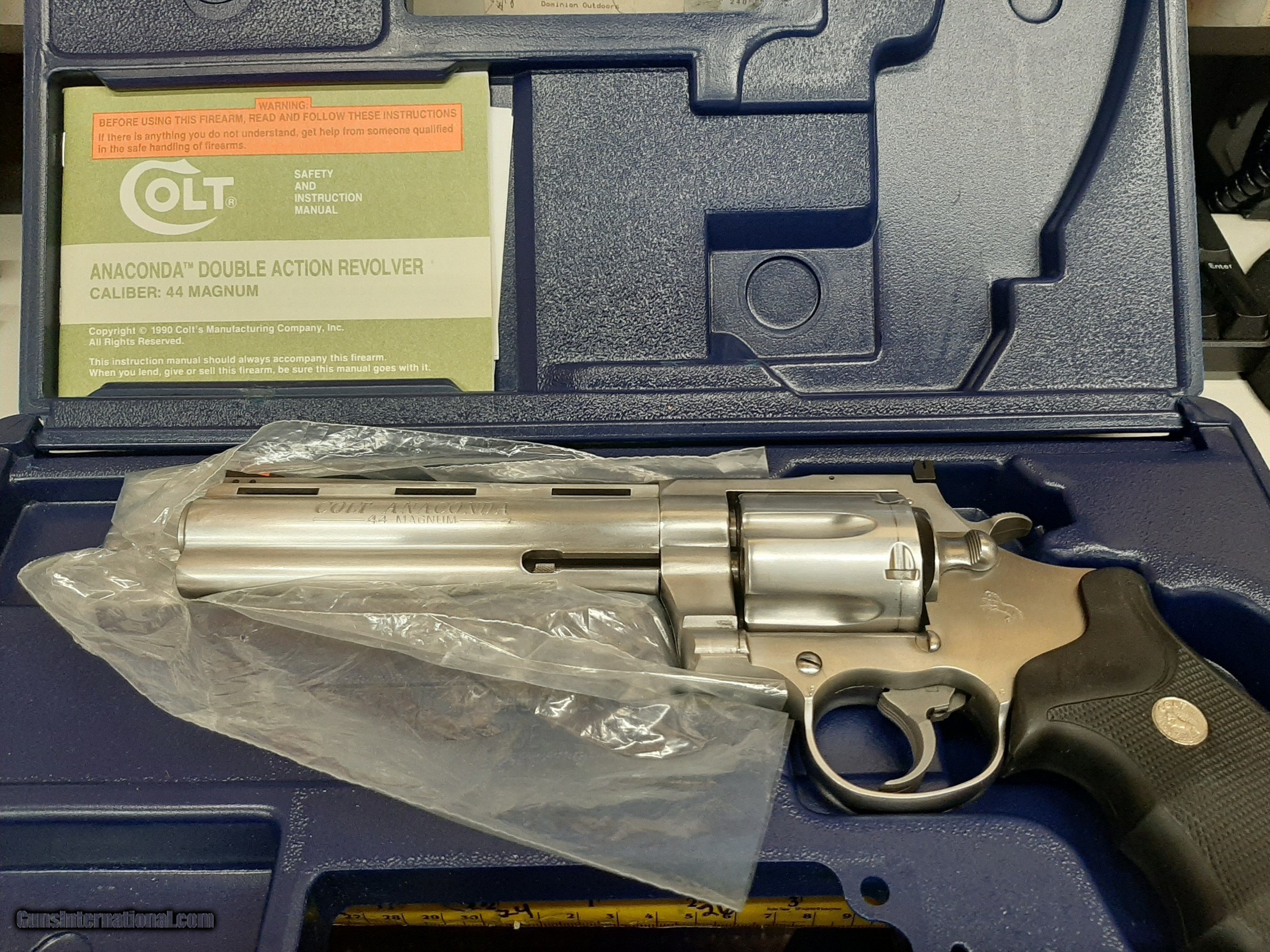 Description: CONSIGNMENT VERY GOOD CONDITION COLT ANACONDA STS .44 MAG -- 6" BARREL -- BLACK COLT PACHMYER GRIPS MADE IN 1992 HAS ORIGINAL FACTORY CASE, MANUAL & SLEEVE ****PLEASE CALL IN THE WITH THE SELLER’S INVENTORY NUMBER IF INQUIRING ABOUT A FIREARM****** WE DO NOT SHIP FIREARMS AND/OR FIREARMS’ PARTS OUT OF THE 50 UNITED STATES, SO DON’T ASK PRICE REFLECTS PAYMENT BY MONEY ORDER / CASHIERS CHECK. A 3% PREMIUM IS ADDED FOR CREDIT CARDS. WE DO ACCEPT PERSONAL OR BUSINESS CHECKS, BUT THERE IS A GRACE PERIOD OF 10 BUSINESSS DAYS ON THEM. Shipping is $40 for handgun and $30 for long gun. Shipping to Alaska and Hawaii will be more based on weight of firearm. WE DO OFFER LAYAWAY PLANS FOR 30,60, OR 90 DAYS. THERE IS A $5.00 CHARGE FOR EVERY 30 DAYS ITEM IS ON LAYAWAY. WE ALSO REQUIRE A 20% DOWN PAYMENT ON TOTAL OF LAYAWAY SALE. LAYAWAYS ARE NON- REFUNDABLE. HERE IS HOW THIS PROCESS WORKS. YOU WOULD CALL US AT 540-337-9218 WITH LISTER # TO PURCHASE THE GUN. THEN ONCE I HAVE RECEIVED PAYMENT AND AN FFL (FEDERAL FIREARMS LICENSE) FROM A LICENSED DEALER IN YOUR AREA OF YOUR CHOICE. WE WILL THEN SHIP THE GUN TO THEM. YOU WOULD THEN PICK UP THE GUN AT YOUR LOCAL DEALER AND DO PAPER WORK THERE. Please have your FFL Dealers contact information when you call. DOMINION OUTDOORS 15 ANGELA COURT FISHERSVILLE, VA 22939 540-337-9218 540-337-2422 fax M – F 9 to 6 ETZ Sat 9 – 4 ETZ ****PLEASE CALL IN THE WITH THE SELLER’S INVENTORY NUMBER**** ***PLANO HARD CASES AVAIABLE FOR PURCHASE $19.99 WITH THE PURCHASE OF A FIREARM** *** Online prices compared to in store prices will vary. *** SOLD |