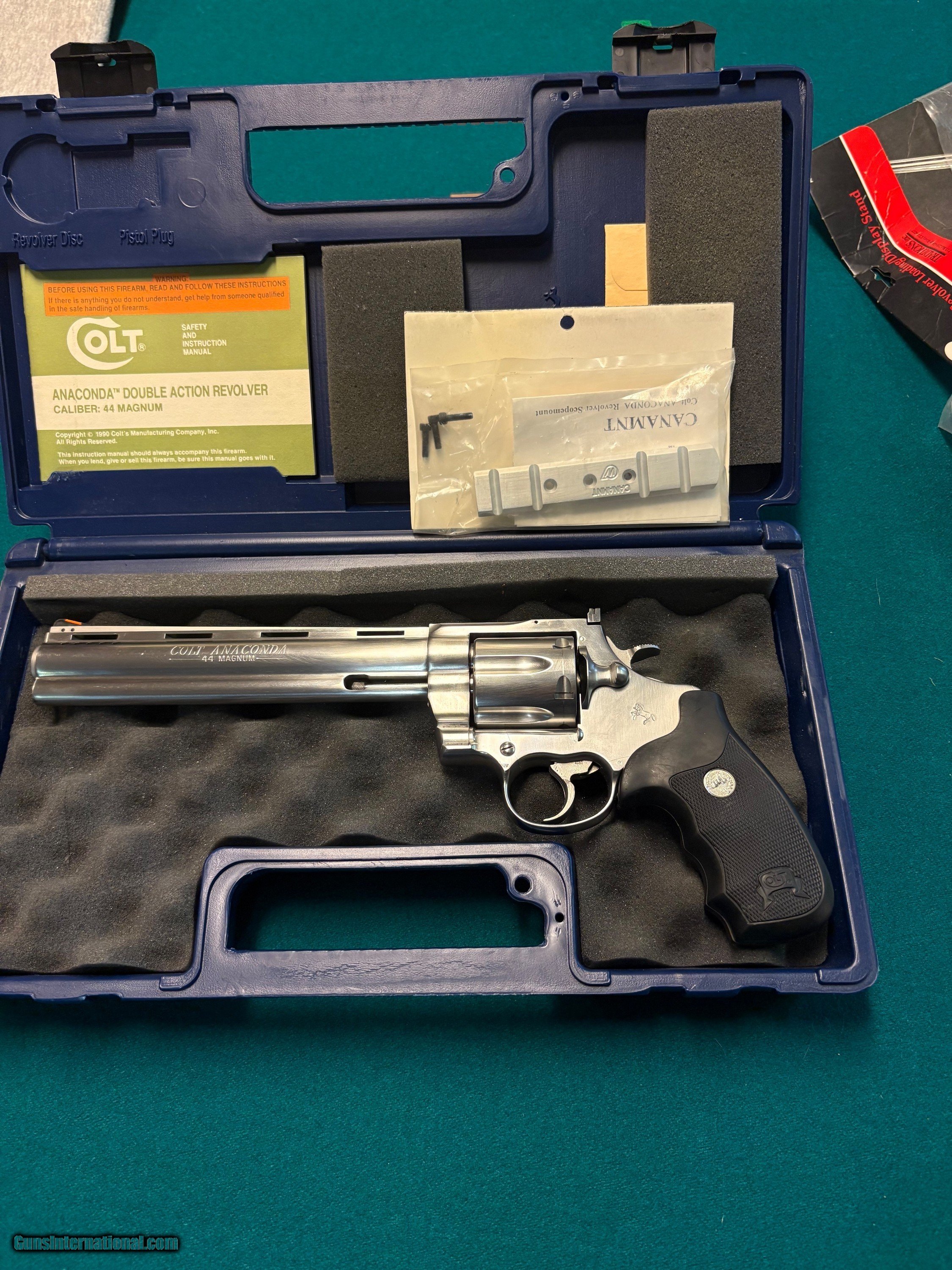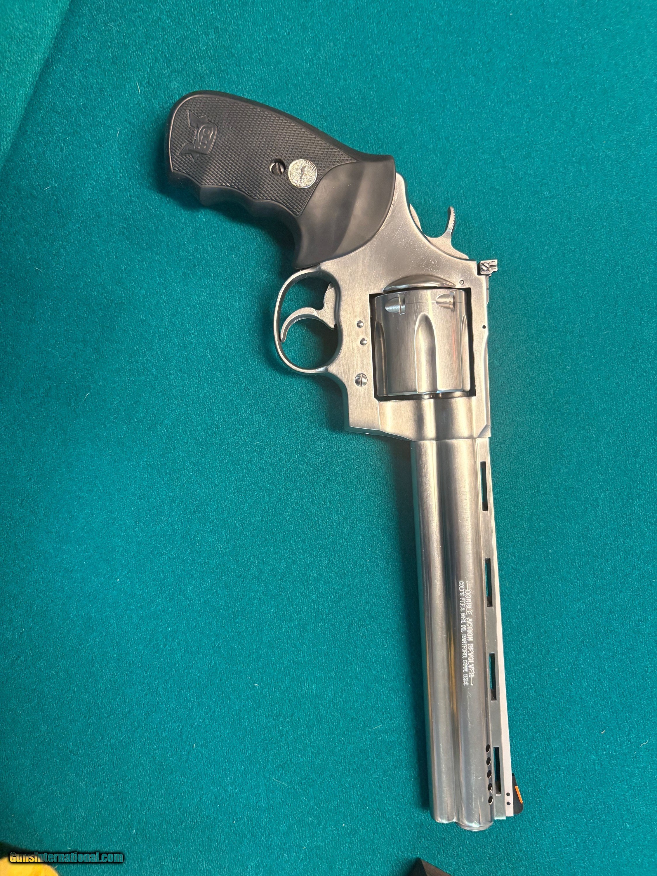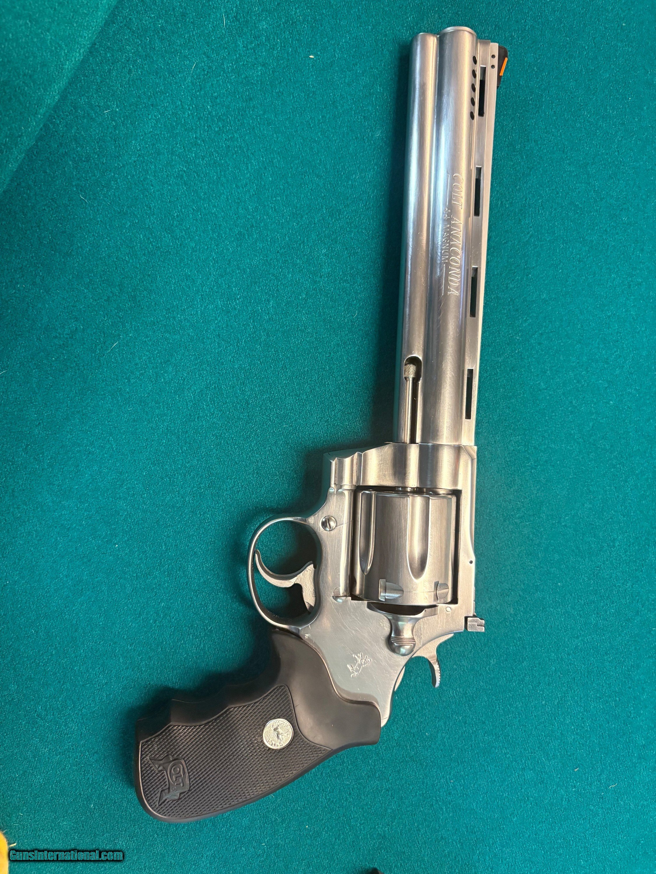 Description: 1998 8" magnum,capacity 6 rnds,ported drilled and tapped,with brand new scope mount,action is tight and bore is excellent, had big plans for this colt,but kids then grandkids came first!in very good condition,i bought it unfired and i only put twenty rnds through it,comes with everything it came with ,minus the hang tag and red circle guard,original colt hardcase,manuel,bright stainless. Handgun Caliber: .44 Manufacturer: colt Model: stainless steel Bore Info: crisp Chambers: very clean Condition: excellent Price: $1,850.00 Buy Now Contact Seller |