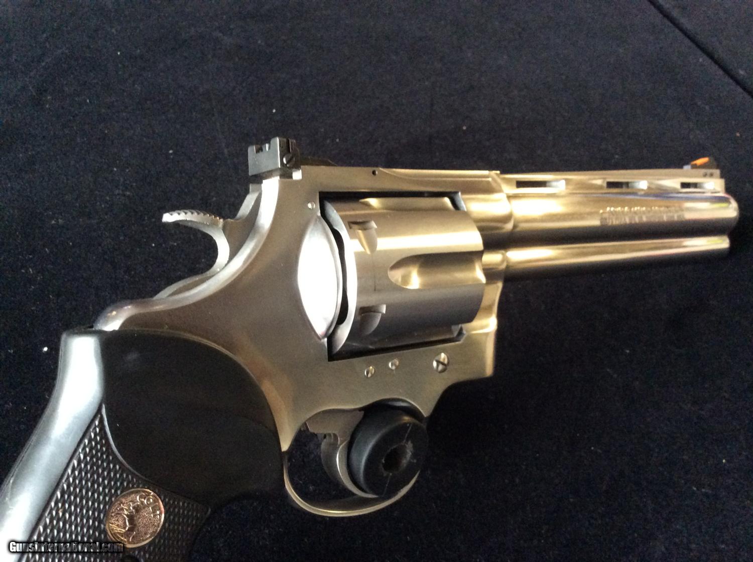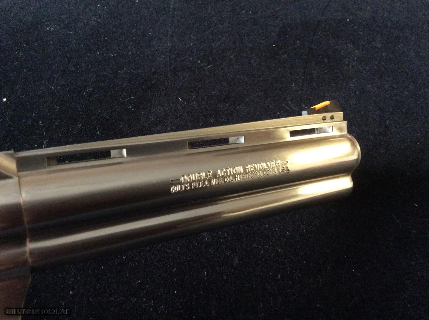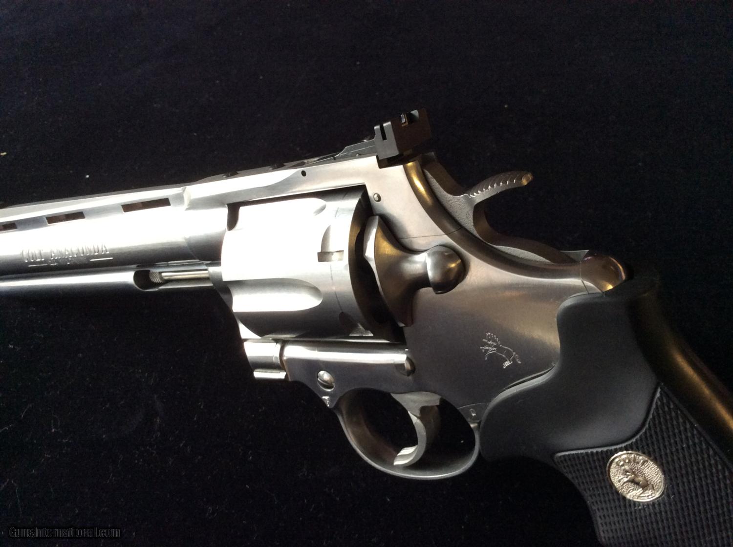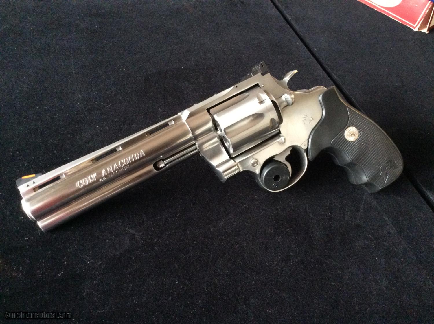 Description: Colt Anaconda 6” STS Drilled and Tapped. For sale is a very nice Colt Anaconda chambered in the powerful .44 Magnum with the very rare and sought after factory drilled and tapped option from the colt custom shop. Even retained the plastic tapped hole plugs. This Snake features a perfect condition bore inside the 6 Inch Barrel and the factory adjustable sights on the outside. The condition overall is very nice with no issues and a very light turn line on the cylinder. This gun has been fired very little and has tight lock-up, perfect timing. The action is crisp as expected from a Colt Snake. This Anaconda is fitted with the original Colt grips and comes in a Colt factory original serialized blue case and manual. No disappointments here. You will not find another one in this condition at this price. Please know your state laws. This firearm will ship FFL to FFL only. Shipping is $40 insured. Payment is due within 5 business days. Money Orders, Postal preferred, certified bank checks or personal checks only. All payments will need to clear prior to shipping so allow ten business days once funds are received. SOLD Manufacturer: Colt Model: Anaconda Caliber Info: ,44 Condition: EX Metal Condition: EX Wood Condition: EX Bore Condition: EX |