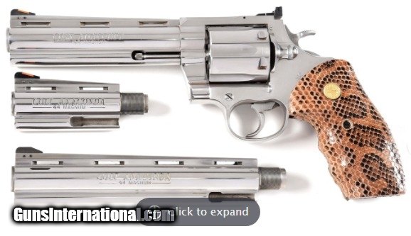 Description: COLT ANACONDA DOUBLE ACTION REVOLVER W/ SNAKESKIN GRIPS EXTRA BARRELS - Used SOLD |