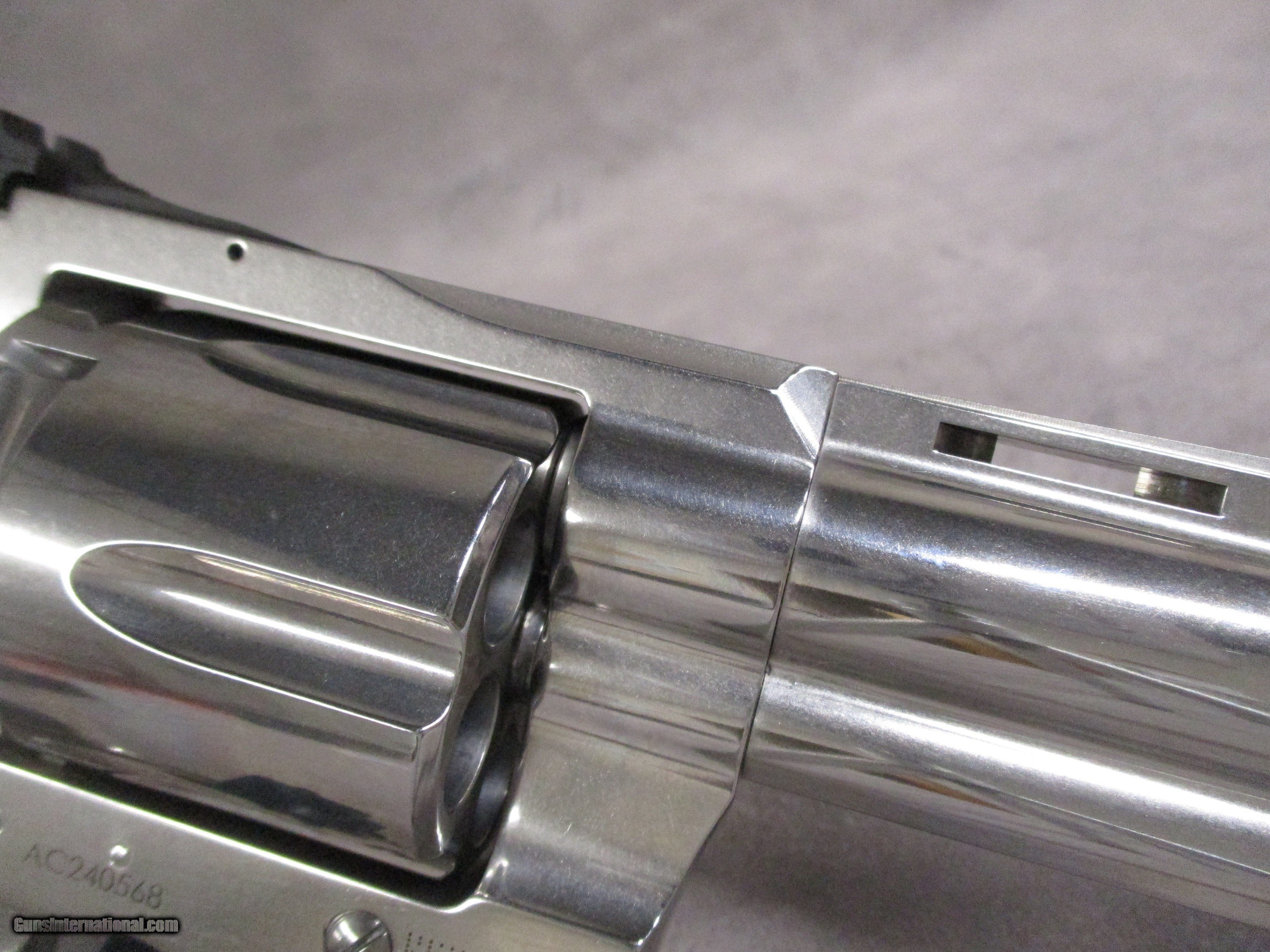 Description: The Colt Anaconda! A name that has grown in status over the many years since its introduction and discontinuance so as to be nearly legendary, similar to its smaller cousin the Python. The Anaconda is often considered the “holy grail” of .44 Magnum revolvers. Designed to best any .44 Magnum revolver produced at the time, production of the Anaconda began in 1990. It was essentially an upscaled King Cobra and was never hand-fitted, unlike the Python. One of the Anaconda’s most recognizable features is its ventilated rib, though many Colt revolvers used this same feature. The second most notable feature is its size – the Anaconda was the largest revolver until the introduction of the Smith & Wesson X-frame series of revolvers. The record was previously held by the Colt New Service revolver. The Anaconda, like the Python, is known for its extreme accuracy. One reason for this was the use of what many Colt fans refer to as the “silver ball method”. A Colt trade secret, persons who were actually allowed to see it stated that a silvery ball made of an unknown material were pressed down the unassembled barrels bore by hand (using a tool of course), leaving the bore very shiny. Sadly, falling interest in revolvers and lowered demand for them on the market led to Colt ceasing production of all double action revolvers, even from the custom shop, in 2003. Over the years, original Anacondas, particularly those chambered in the .45 Colt, grew in value. Needless to say, Colt eventually realized by the early 2010s that there was a growing interest in revolvers. Testing the waters, Colt reintroduced a newer version of the Cobra in 2017. This was followed up in 2019 by the King Cobra, and in 2020 by an updated version of the Python was finally released. Hot on its heels, the new, updated Anaconda was released in 2021, featuring several improvements over the originals. The newer version is essentially an upscaled Python 2020 rather than an upscaled King Cobra. The front sight is removable, and the barrel crown is counter-sunk. This serves two functions – it protects the true muzzle of the Anaconda and improves the revolver’s inherent accuracy. The barrel is a true heavy barrel rather than the screw-in barrel and shroud found on most modern revolvers. The newer Anaconda’s bulk is intended to allow it to handle the same heavy loads of .44 Magnum normally associated with Ruger revolvers. The rear face of the cylinder features a cutout designed to increase the safety of the shooter in the event of a blown cartridge case head. The action has been improved with the simplification of the design – there are fewer moving components, and therefore the action is much smoother, thanks to the new Linear Leaf Spring Action introduced with the Cobra in 2017. The double action pull should run around 9 – 10 lbs. in weight, with the single action coming in at around 5 – 6 lbs. The trigger and hammer are reinforced to increase longevity. The heavy hammer also aids in ensuring good primer strikes. The example shown here is new in the box and ready to go. The polished stainless finish gives the Anaconda a gorgeous appearance. Barrel length is 6 inches making this revolver very suitable for target shooting and as a woods gun. SOLD Handgun Caliber: .44 Special, .44 S&W Russian, .44 Remington Magnum Manufacturer: Colt's PT. F.A. Mfg. Co. Model: Anaconda Serial Number: AC240568 Bore: Rifled, 6 grooves, 1:20 inches (1 in 508 mm) LH twist Chambers: 6 Ejectors: Manual, simultaneous 6-round ejection Condition: New in Box Barrels: Stainless steel Barrel Type: Full-lug, Ribbed Action: Double/Single Action Triggers: Serrated target trigger, stainless steel Stock: Rubber grips Rib: Vent rib Finish: Semi-Bright Stainless Weight: 53.0 oz. unloaded Sights: Adjustable target rear, red ramp front, sight radius 8.125 inches (206.375 mm) Case: Colt box |