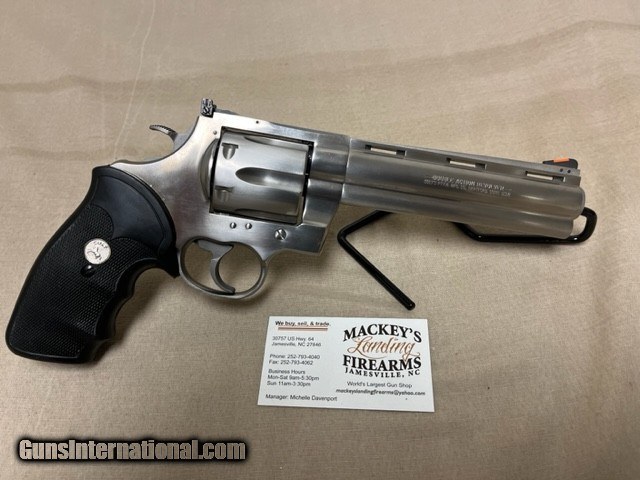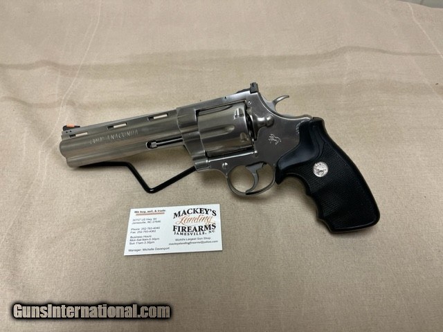 Description: Colt Anaconda 44 magnum 6" (old model) With matchung box sleve numbered and matching revolver, But it does not have the box insert. This Anaconda dates to 1992 via the Colt serial # Lookup. This revolver is in really nice condition Very good to excellent. Great addition to a collection or to shoot. For ALL Inquiries call the shop at 252 793-4040 Monday-Saturday 9am-5pm Sundays 11am-3pm. SOLD Handgun Caliber: .44 Remington Magnum, .44 Manufacturer: Colt Model: Anaconda Serial Number: MM25056 Barrel Length: 6 Condition: Very good Metal Condition: very good Bore Condition: excellent |