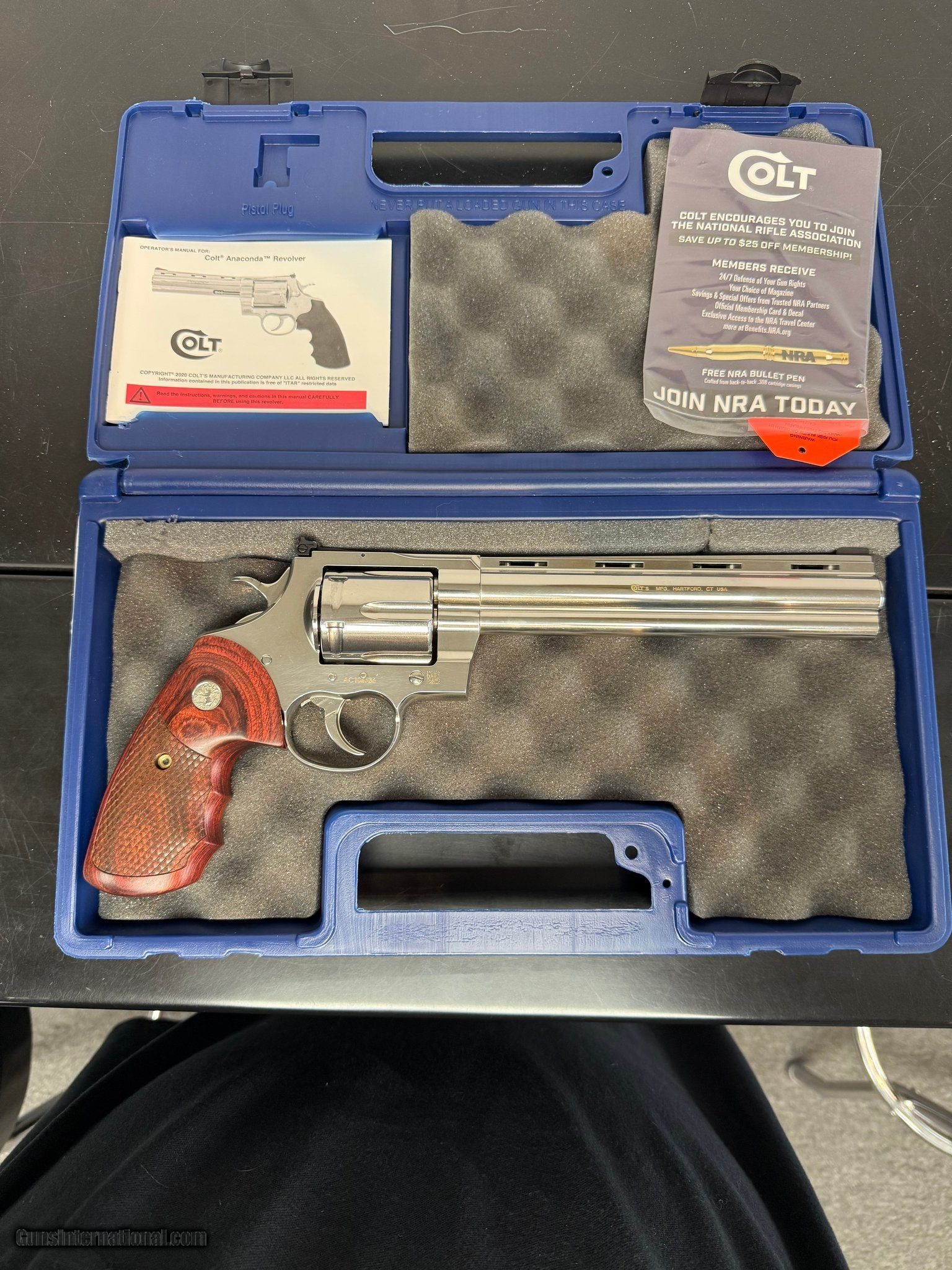 Description: Guns Listing ID: 530101 NEW COLT ANACONDA 44MAG 6 ROUND REVOLVER HIGH POLISHED STAINLESS BRASS BEAD FRONT SIGHT ALTAMONT GRIPS FACTORY BLUE BOX AND MANUALS THANKS FOR LOOKING SOLD Manufacturer: COLT Model: Anaconda -SP8WBB-TLS Caliber Info: .44 MAGNUM Condition: Used - Non-Certified Barrels: 8 Action: REVOLVER Finish: polished-stainless |