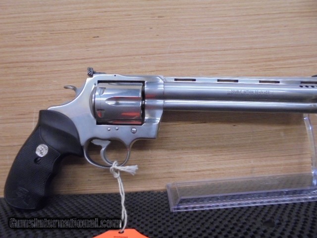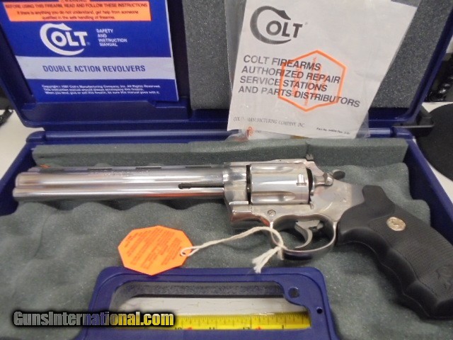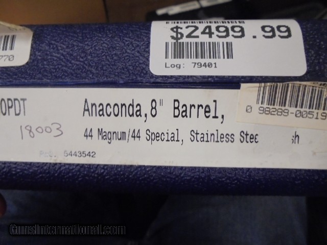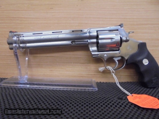 Description: USED GOOD CONDITION COLT ANACONDA SS .44 MAG 8" PORTED BARREL RED RAMP FRONT SIGHT ADJ REAR SIGHT COLT BLACK RUBBER GRIPS COMES WITH FACTORY CASE AND MANUAL ****PLEASE CALL IN THE WITH THE SELLER’S INVENTORY NUMBER IF INQUIRING ABOUT A FIREARM****** WE DO NOT SHIP FIREARMS AND/OR FIREARMS’ PARTS OUT OF THE 50 UNITED STATES, SO DON’T ASK PRICE REFLECTS PAYMENT BY MONEY ORDER / CASHIERS CHECK. A 3% PREMIUM IS ADDED FOR CREDIT CARDS. WE DO ACCEPT PERSONAL OR BUSINESS CHECKS, BUT THERE IS A GRACE PERIOD OF 10 BUSINESSS DAYS ON THEM. Shipping is $40 for handgun and $30 for long gun. Shipping to Alaska and Hawaii will be more based on weight of firearm. WE DO OFFER LAYAWAY PLANS FOR 30,60, OR 90 DAYS. THERE IS A $5.00 CHARGE FOR EVERY 30 DAYS ITEM IS ON LAYAWAY. WE ALSO REQUIRE A 20% DOWN PAYMENT ON TOTAL OF LAYAWAY SALE. LAYAWAYS ARE NON- REFUNDABLE. HERE IS HOW THIS PROCESS WORKS. YOU WOULD CALL US AT 540-337-9218 WITH LISTER # TO PURCHASE THE GUN. THEN ONCE I HAVE RECEIVED PAYMENT AND AN FFL (FEDERAL FIREARMS LICENSE) FROM A LICENSED DEALER IN YOUR AREA OF YOUR CHOICE. WE WILL THEN SHIP THE GUN TO THEM. YOU WOULD THEN PICK UP THE GUN AT YOUR LOCAL DEALER AND DO PAPER WORK THERE. Please have your FFL Dealers contact information when you call. DOMINION OUTDOORS 15 ANGELA COURT FISHERSVILLE, VA 22939 540-337-9218 540-337-2422 fax M – F 9 to 6 ETZ Sat 9 – 4 ETZ ****PLEASE CALL IN THE WITH THE SELLER’S INVENTORY NUMBER**** ***PLANO HARD CASES AVAIABLE FOR PURCHASE $19.99 WITH THE PURCHASE OF A FIREARM** ****PLEASE CALL IN THE WITH THE SELLER’S *** Online prices compared to in store prices will vary. *** SOLD |