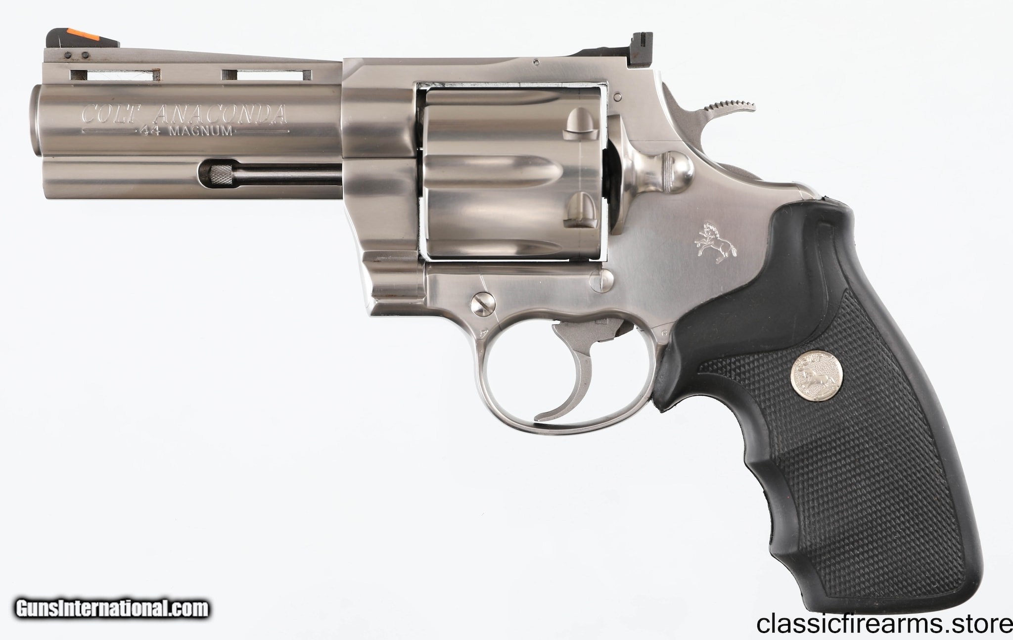 Description: Guns Listing ID: 633542 MAKE - COLT MODEL - ANACONDA FINISH - STAINLESS STEEL BARREL - 4\" CALIBER - 44 MAGNUM CAPACITY - 6 GRIPS - RUBBER CONDITION - EXCELLENT FEATURES - COMES WITH BOX & PAPERS SOLD Manufacturer: COLT Model: ANACONDA STAINLESS 4 Caliber Info: 44 MAG Condition: Used - Non-Certified Barrels: 4 BARREL Finish: STAINLESS STEEL |