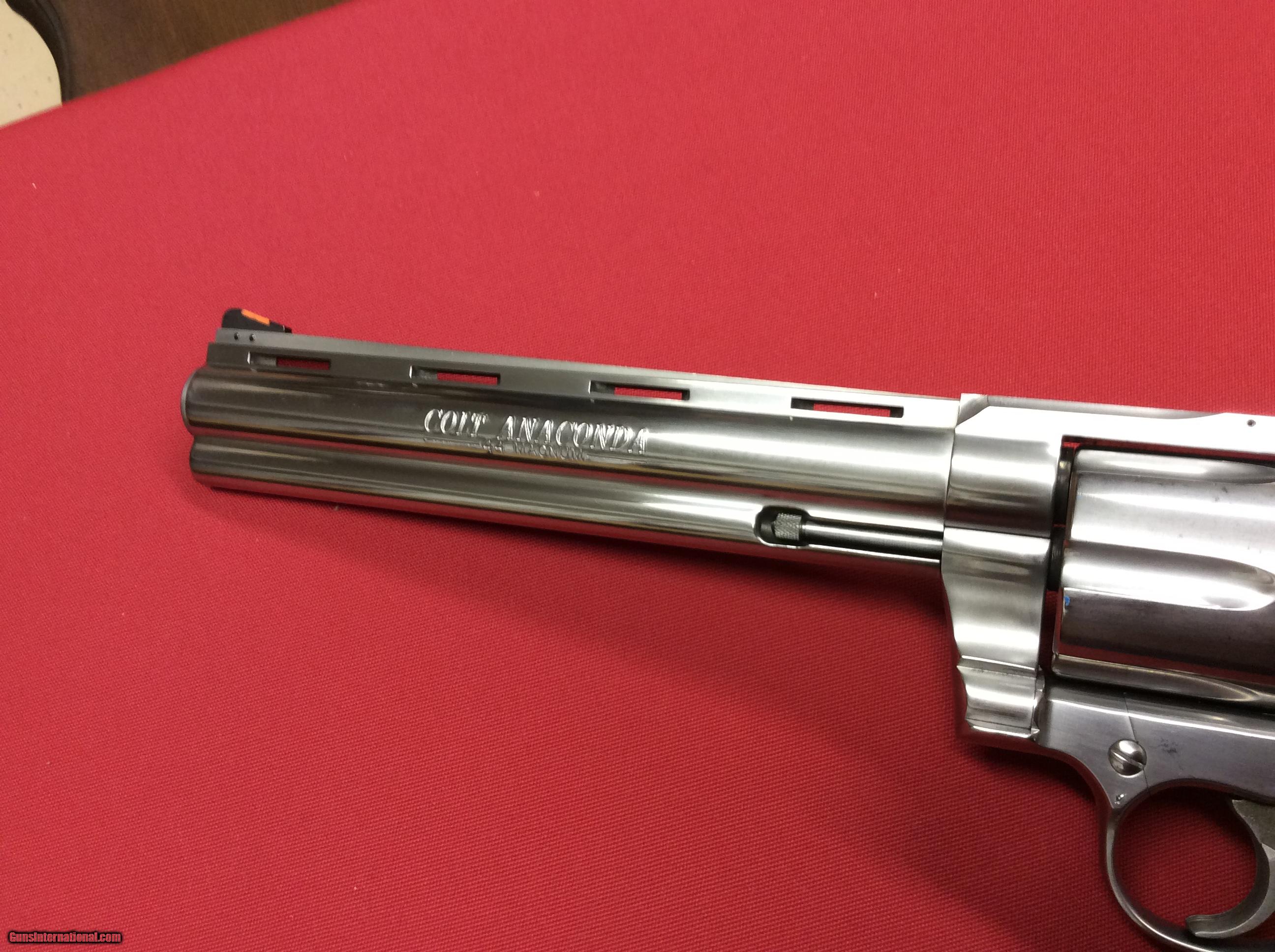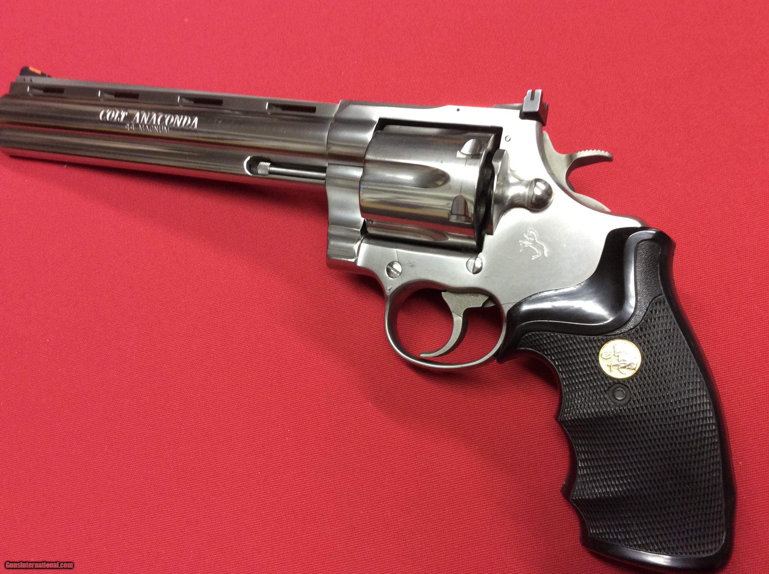 Description: Colt Anaconda 8 inch STS .44 Mag What we have here is a real nice 8 inch hand cannon in .44 Mag. Original finish is STS, not one of the aftermarket polished ones selling for close to 3k. This is as it left the factory in the colt blue hard case and outter original serialised picture box. I would rate it at 97% with just the typical minor scuffs you get when handling the STS finish. I shot it last week and it is in fantastic shape mechanically with tight lock up. This is one you will enjoy taking out. I did. $25 shipped FFL to FFL. Any kind of check or money order accepted. Layaway accepted. SOLD Manufacturer: Colt Model: Anaconda Caliber Info: .44 Mag Condition: VG Metal Condition: VG Wood Condition: VG Bore Condition: EX |