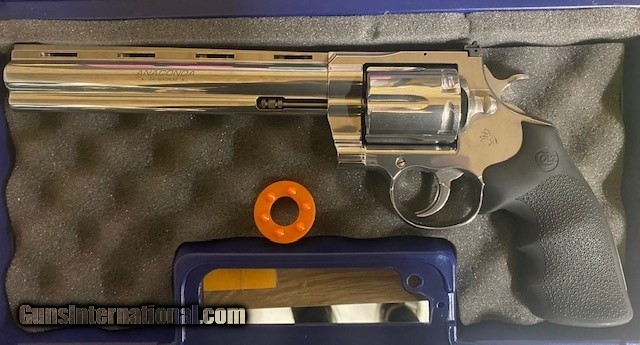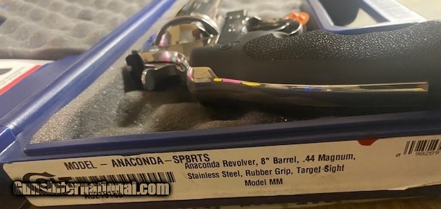 Description: Guns Listing ID: 625517 Excellent Condition Colt Anaconda 44 Mag 8.38 \" Comes with box and paperwork Model Anaconda Capacity 6rd Action DAO Frame Finish Semi-Bright Stainless OAL 15\" Frame Material Stainless Steel Sights Red Ramp Front, Adjustable Rear Barrel Finish Semi-Bright Stainless Grips Finger Grooved Black Hogue Rubber Cylinder Material Stainless Steel Cylinder Finish Semi-Bright Stainless Barrel Length 8\" Max Capacity 6 Frame Description Semi-Bright Stainless Steel Hammer Style Exposed SOLD Manufacturer: COLT Model: Anaconda Caliber Info: .44 MAGNUM Condition: Used - Non-Certified Barrels: 8" barrel Finish: STAINLESS STEEL |