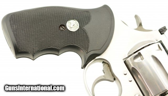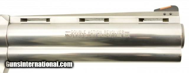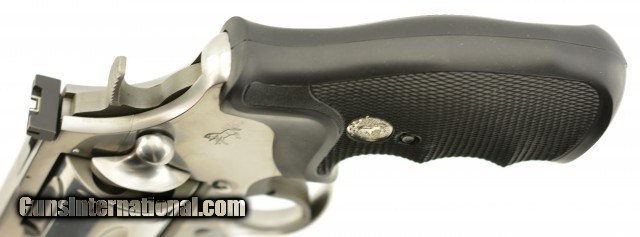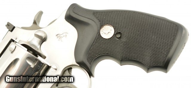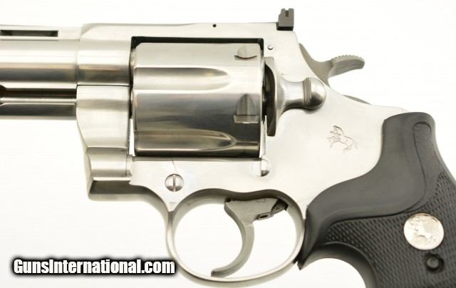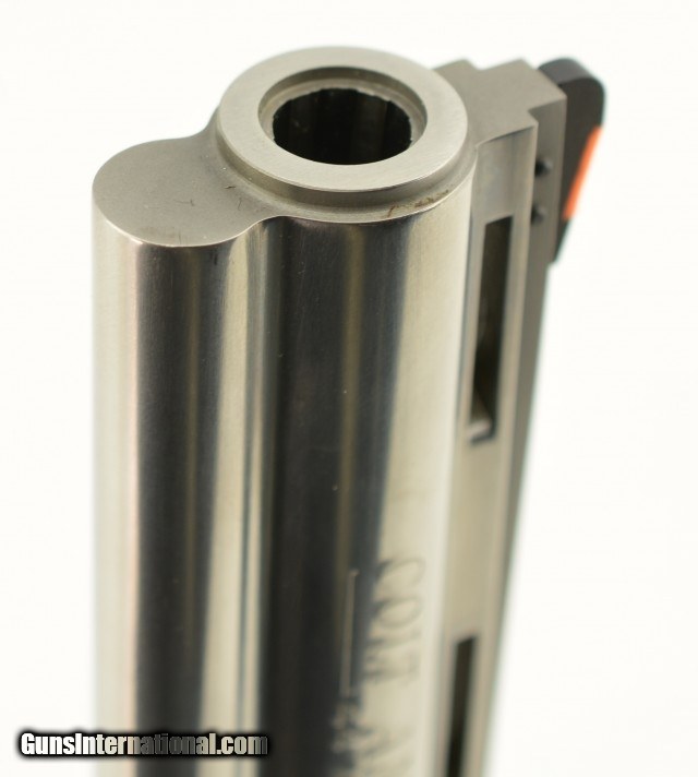 Description: Serial #MM39593, .44 Magnum, 6" barrel with an excellent, bright bore. This stainless steel revolver exhibits a minor turn-ring on the cylinder, and has a few very mild surface scratches scattered about the otherwise excellent stainless steel surfaces. The original Pachmayr Presentation, Colt medallion grips are likewise in excellent, almost unworn condition. The firing pin retaining pin does protrude from the frame somewhat, may have been replaced. The lock-up is tight and the mechanism functions flawlessly. This is a splendid 1990s, .44 Colt "Snake Gun" and is in excellent overall condition. FFL SOLD |