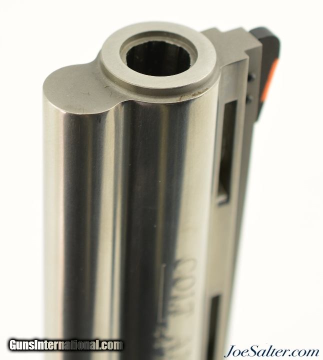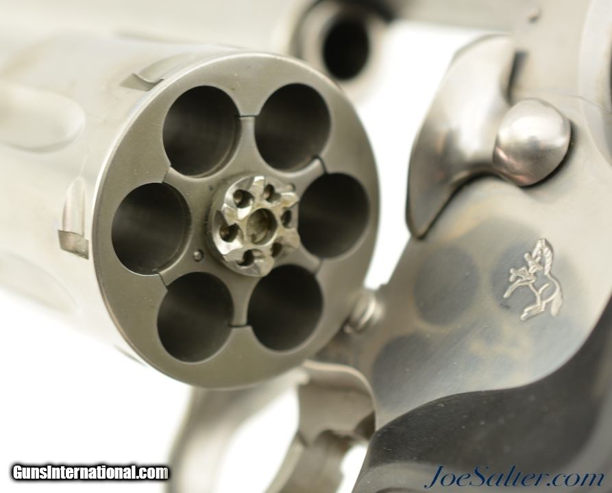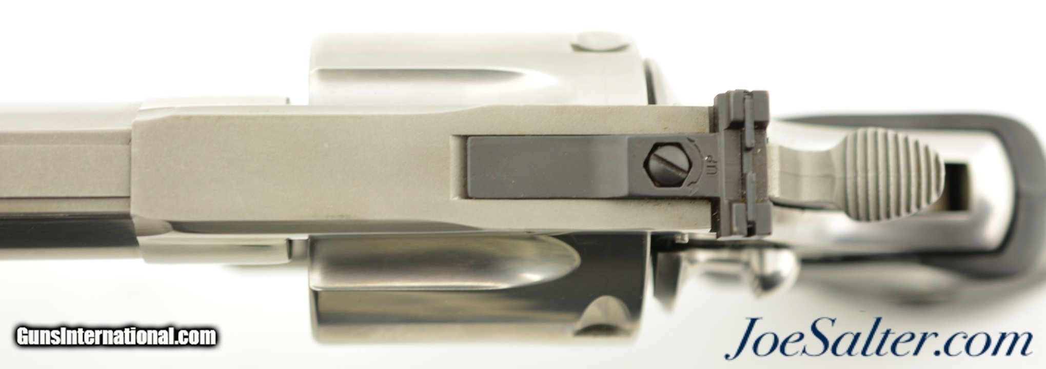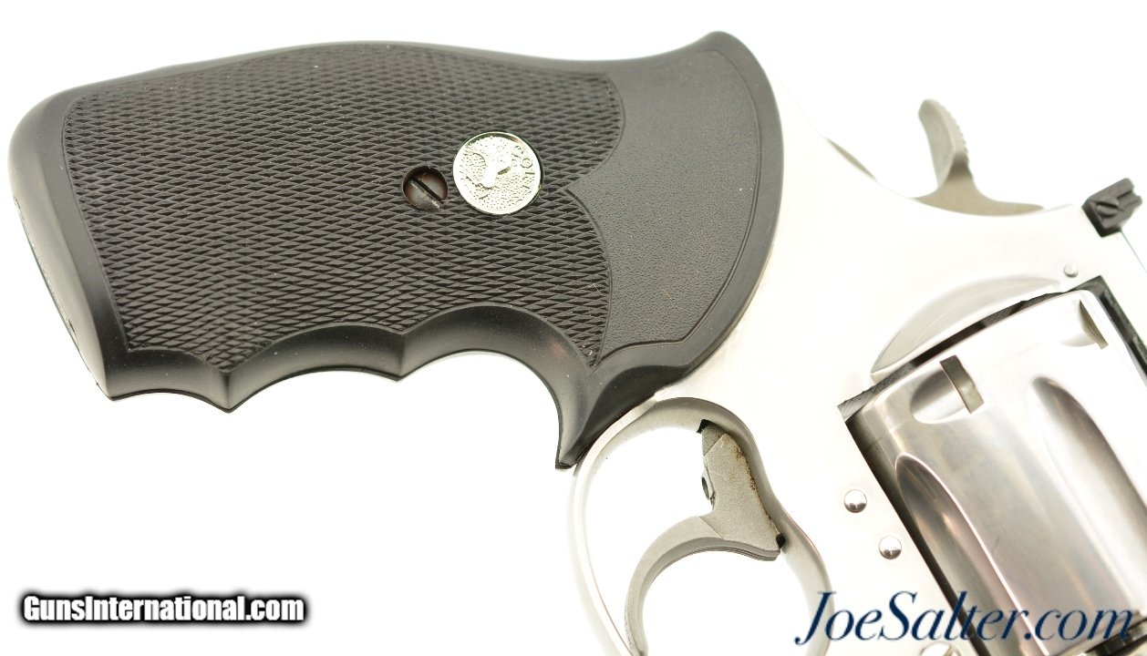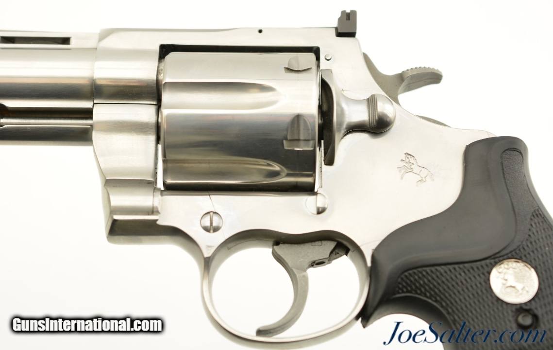 Description: Serial #MM39593, .44 Magnum, 6" barrel with an excellent, bright bore. This stainless steel revolver exhibits a minor turn-ring on the cylinder, and has a few very mild surface scratches scattered about the otherwise excellent stainless steel surfaces. The original Pachmayr Presentation, Colt medallion grips are likewise in excellent, almost unworn condition. The firing pin retaining pin does protrude from the frame somewhat, may have been replaced. The lock-up is tight and the mechanism functions flawlessly. This is a splendid 1990s, .44 Colt "Snake Gun" and is in excellent overall condition. FFL SOLD |