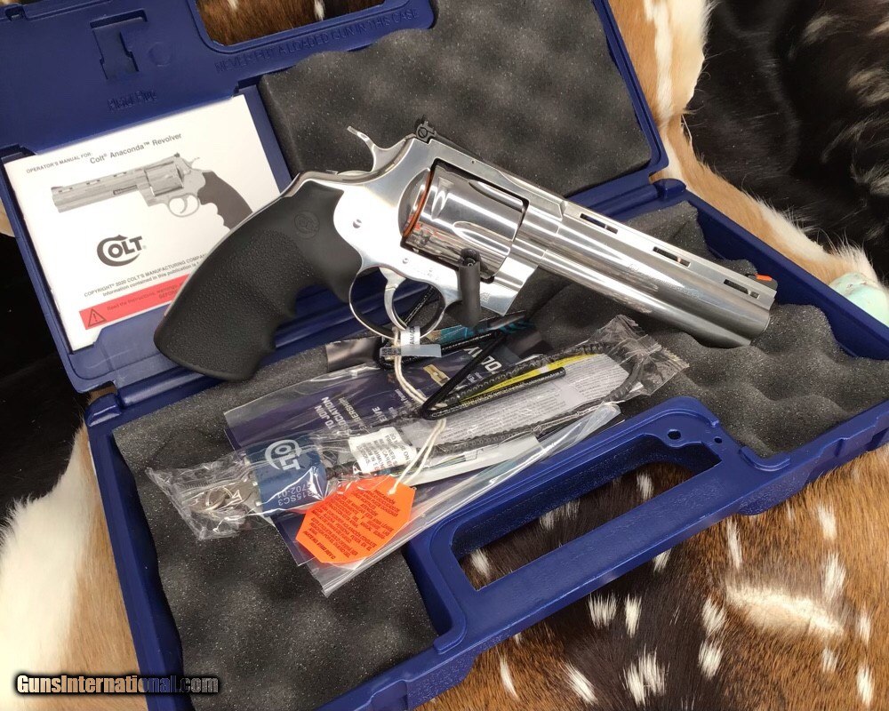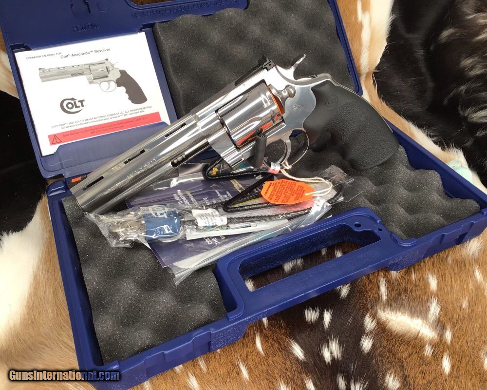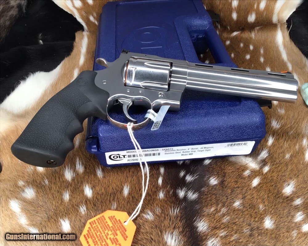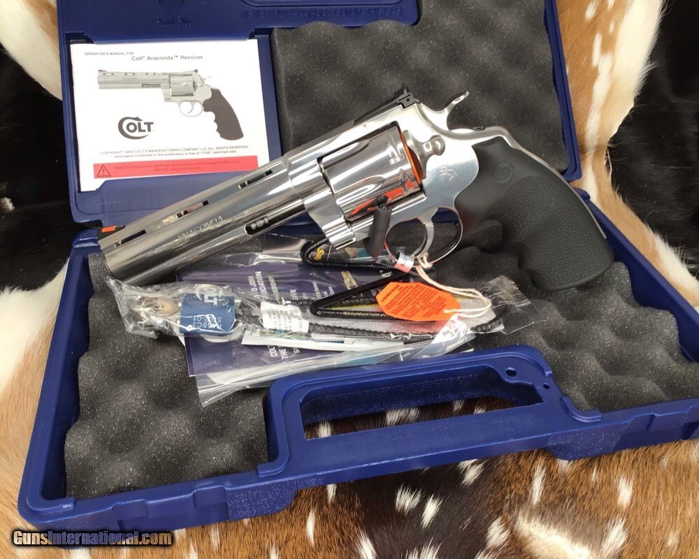 Description: New In Box Colt Anaconda wearing a six inch vented rib barrel, Target sights,, Rubber grips. Only unboxed for photos, light factory packing grease still remains on stainless surfaces. In factory hardcase with manual and lock. Beautiful new Colt Anaconda priced to sell fast. Add 3% if paying with credit card. God Bless America from a proud American, and a Viet Nam Vet , thankful for our freedoms.. paid for by the Blood ,Sweat and Tears of our brave men and women in uniform. Ten Below Firearms is a Veteran owned and operated business. We specialize in out of production models of high quality firearms. We love to ship! If you are out of state or can't make it to our store, just give us a call! Handguns normally ship for $30 and Long guns for $40 to $65 for extra length long guns. That's 2-3 day USPS Priority shipping, Delivery conformation and with tracking number. Optional Postal insurance is additional $1.70 per $100 and highly recommended. SOLD Handgun Caliber: .44 Remington Magnum Manufacturer: Colt Model: Anaconda Serial Number: AC204613 Barrel Length: 6 inch Condition: New Metal Condition: New Bore Condition: New Action: DA/SA Rib: Vented rib Sights: Target Manufacture Date: 2021 Item Location: Mn |