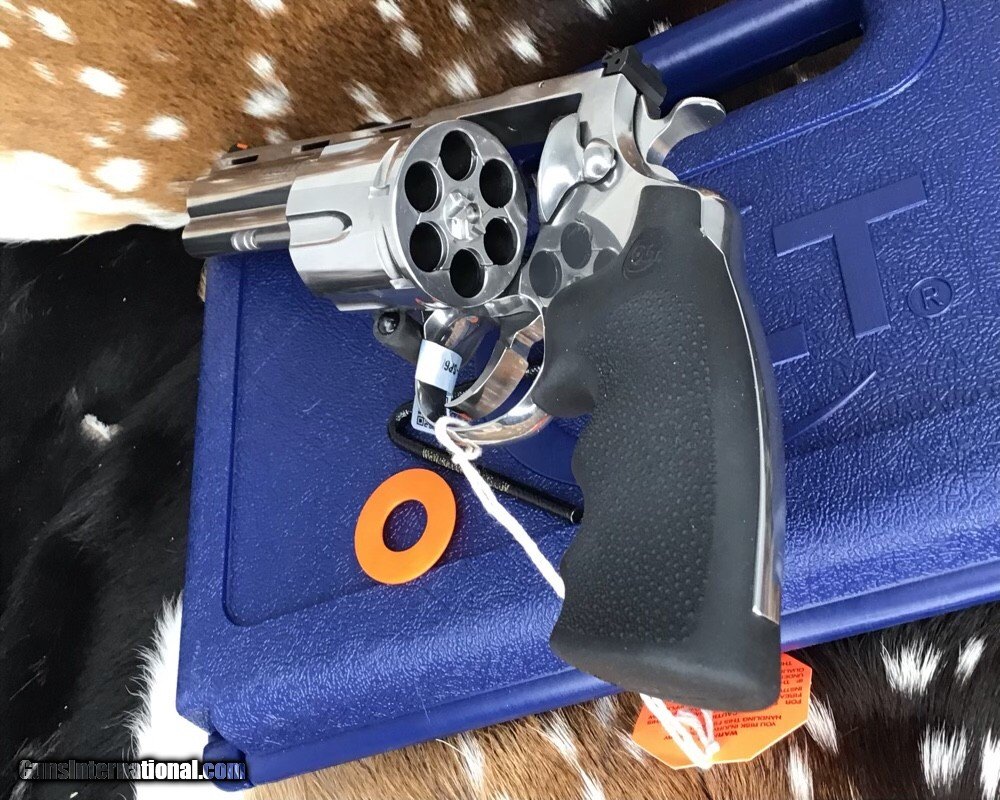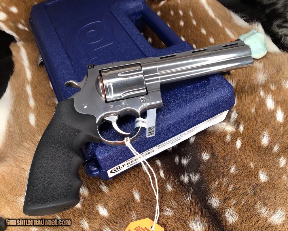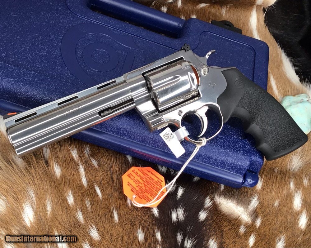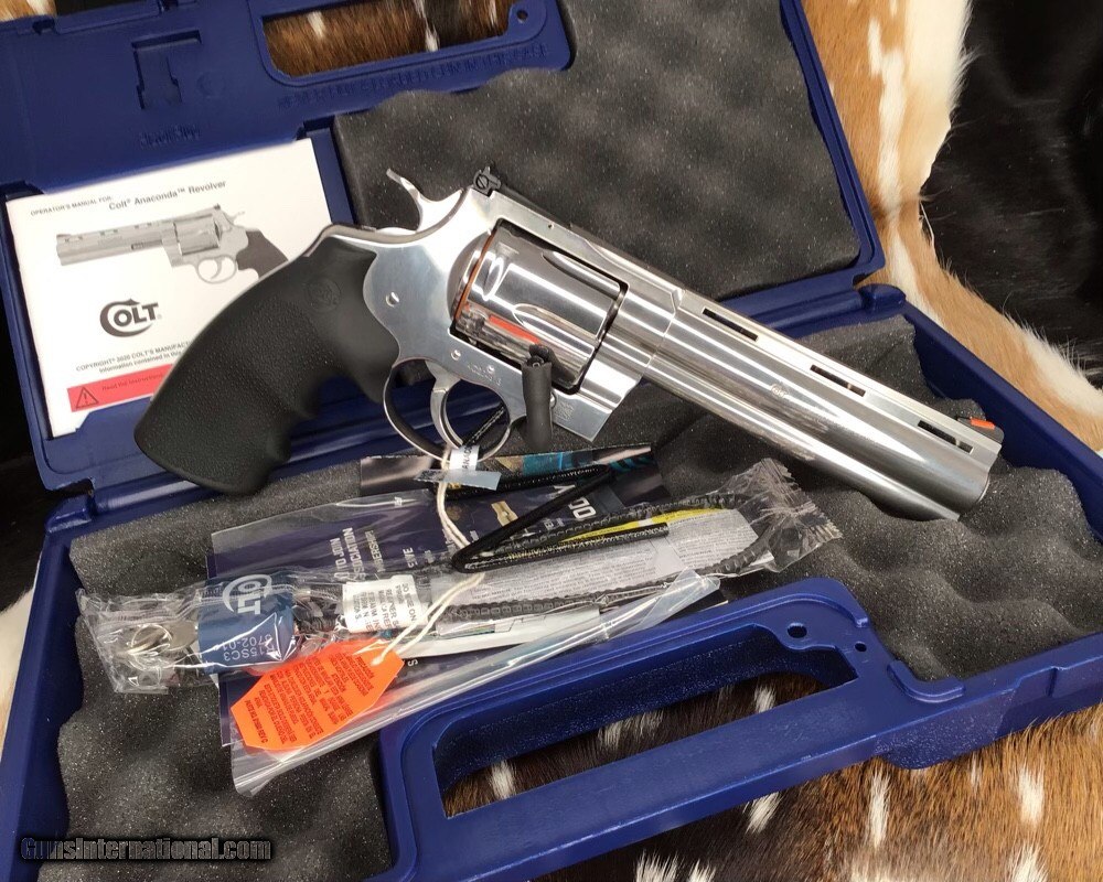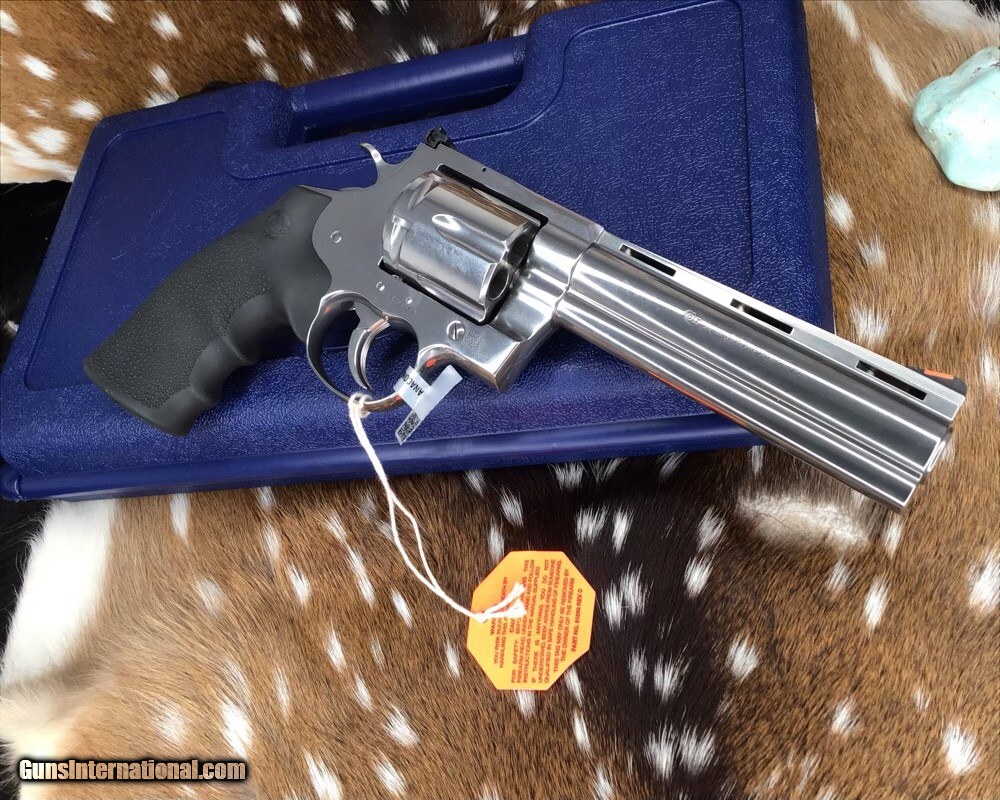 Description: New In Box Colt Anaconda wearing a six inch vented rib barrel, Target sights,, Rubber grips. Only unboxed for photos, light factory packing grease still remains on stainless surfaces. In factory hardcase with manual and lock. Beautiful new Colt Anaconda priced to sell fast. Add 3% if paying with credit card. God Bless America from a proud American, and a Viet Nam Vet , thankful for our freedoms.. paid for by the Blood ,Sweat and Tears of our brave men and women in uniform. Ten Below Firearms is a Veteran owned and operated business. We specialize in out of production models of high quality firearms. We love to ship! If you are out of state or can't make it to our store, just give us a call! Handguns normally ship for $30 and Long guns for $40 to $65 for extra length long guns. That's 2-3 day USPS Priority shipping, Delivery conformation and with tracking number. Optional Postal insurance is additional $1.70 per $100 and highly recommended. SOLD Handgun Caliber: .44 Remington Magnum Manufacturer: Colt Model: Anaconda Serial Number: AC204613 Barrel Length: 6 inch Condition: New Metal Condition: New Bore Condition: New Action: DA/SA Rib: Vented rib Sights: Target Manufacture Date: 2021 Item Location: Mn |