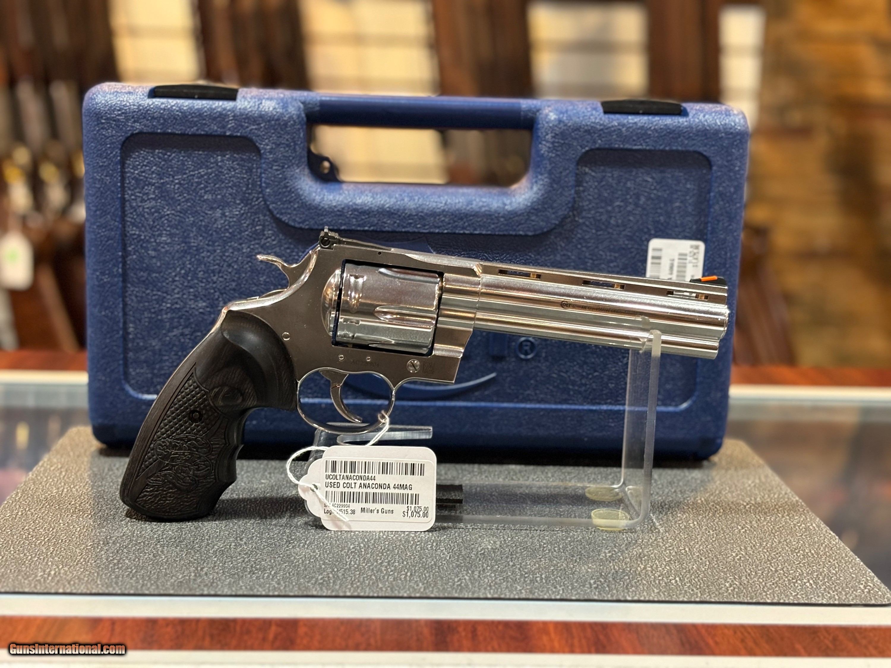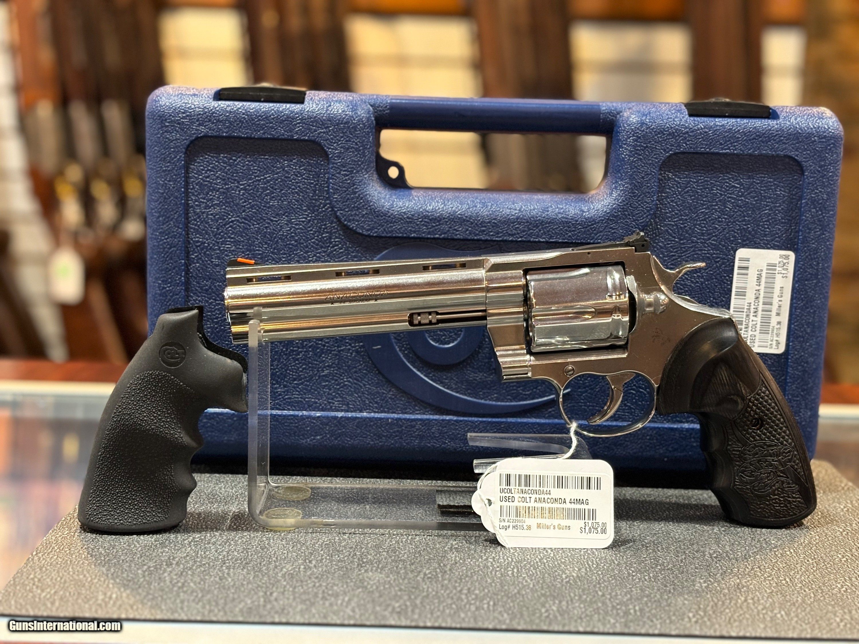 Description: USED Colt Anaconda revolver NEVER FIRED .44 Magnum DA/SA 6" barrel 6 round capacity Stainless finish Stock grip included Factory box and manual Includes Bianci holster SOLD Handgun Caliber: .44 Remington Magnum Manufacturer: Colt Model: Anaconda Serial Number: AC229904 Condition: VERY GOOD |