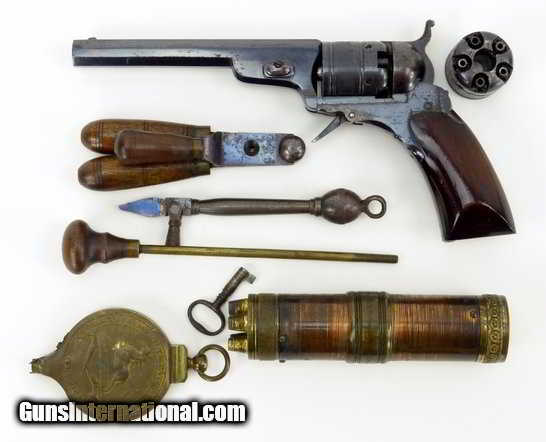 Cased Colt Baby Paterson â„– 1 .28 caliber revolver. Excellent condition Colt Baby Paterson. 95% of the original finish remains. The grips are excellent. This gun is all matching including the extra cylinder. Has the single curve barrel lug with the round back cylinder and contoured grips. Serial number is 457. All accessories are original. The charger still has about 50% of the original finish, and the capper is nice and sharp. The mold and loading tool still have original blue. The case is very good and has the original key. Excellent set in top notch condition!