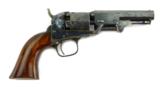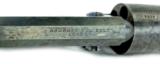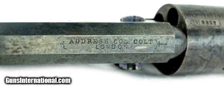 Colt 1849 Pocket London Model. Made in 1856. Scarce barrel address with “{ADDRESS COL. COLT/LONDON}”. Gun is in beautiful condition with 80% of the original blue on the barrel. Cylinder is very fine with excellent cylinder scene. Case colors are beautiful and rate around 100%. Both trigger guard and back strap have all of original silver. Grips are excellent. There is not much not to like about this fine gun!