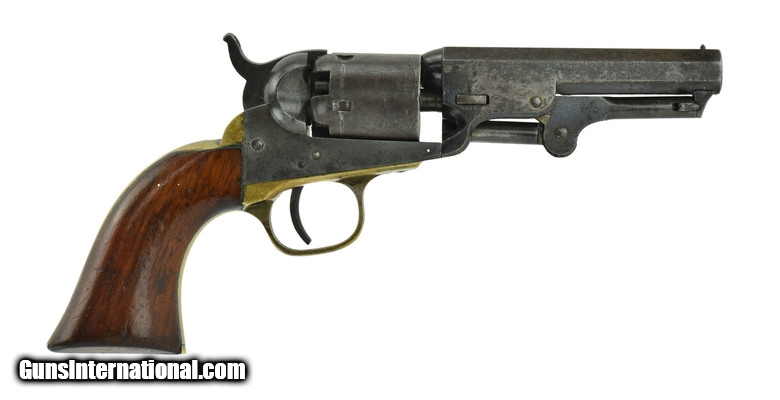Description: Colt 1849 Pocket Model .31 caliber revolver. 4” Barrel. One line New York address. Bore is good with strong rifling. Cylinder scene is very good and 95% clear. The revolver has approximately 30% blue, mostly on the underside of the barrel. Grips are very good plus with 96-98% original varnish. Numbers match expert for wedge (unnumbered) and loading lever which were unnumbered in the last serial range SOLD Antique: Yes |
