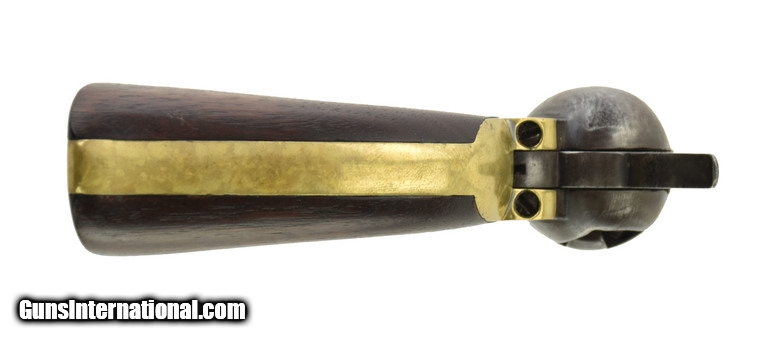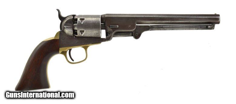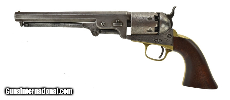 Description: Colt 1851 Navy Revolver. Made in 1862. The metal of this gun has been cleaned and now is a light “gun metal gray” patina. Grips are well made and well fitting replacements. Some of the cylinder scene is still present. SOLD Antique: Yes |