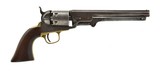 Colt 1851 Navy Revolver. Made in 1862. The metal of this gun has been cleaned and now is a light “gun metal gray” patina. Grips are well made and well fitting replacements. Some of the cylinder scene is still present.