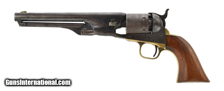 Description: Colt 1861 Navy Made in 1864. Very fine gun with original blue finish rating at 50% of the barrel. The cylinder is nice and sharp with all the cylinder scene. Case colors are dark. Good original varnish remains. Gun is all matching. SOLD Antique: Yes |